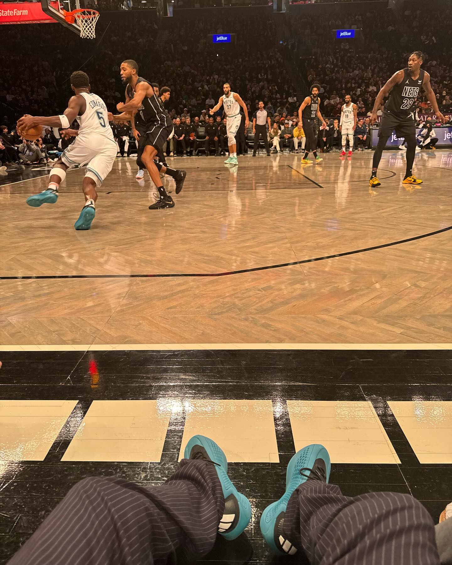 此前在 NBA 赛场穿了双橙色的「华子一代」观战湖人、太阳的比赛。