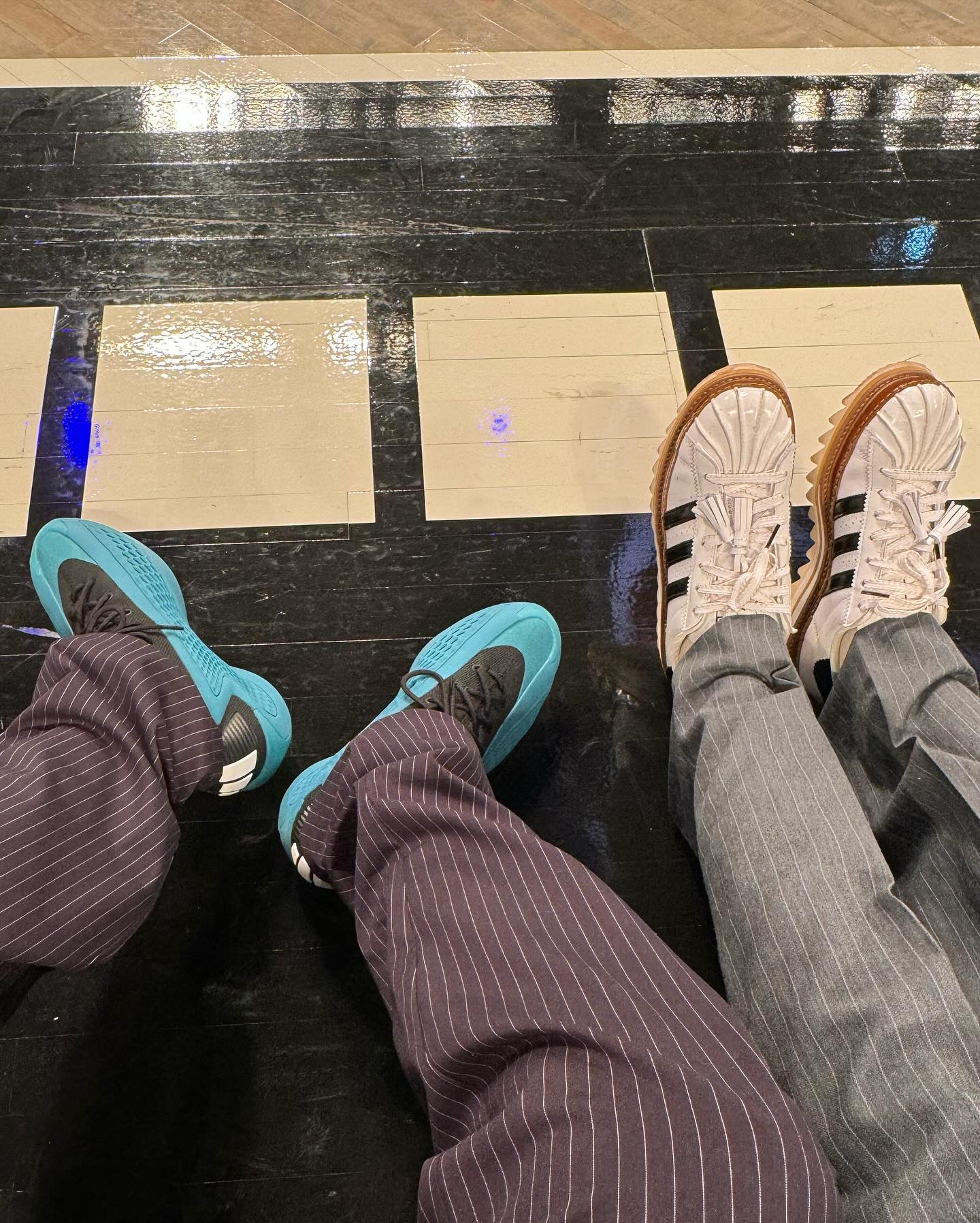 而秦舒培依然穿着 CLOT x 三叶草即将发布的新鞋。