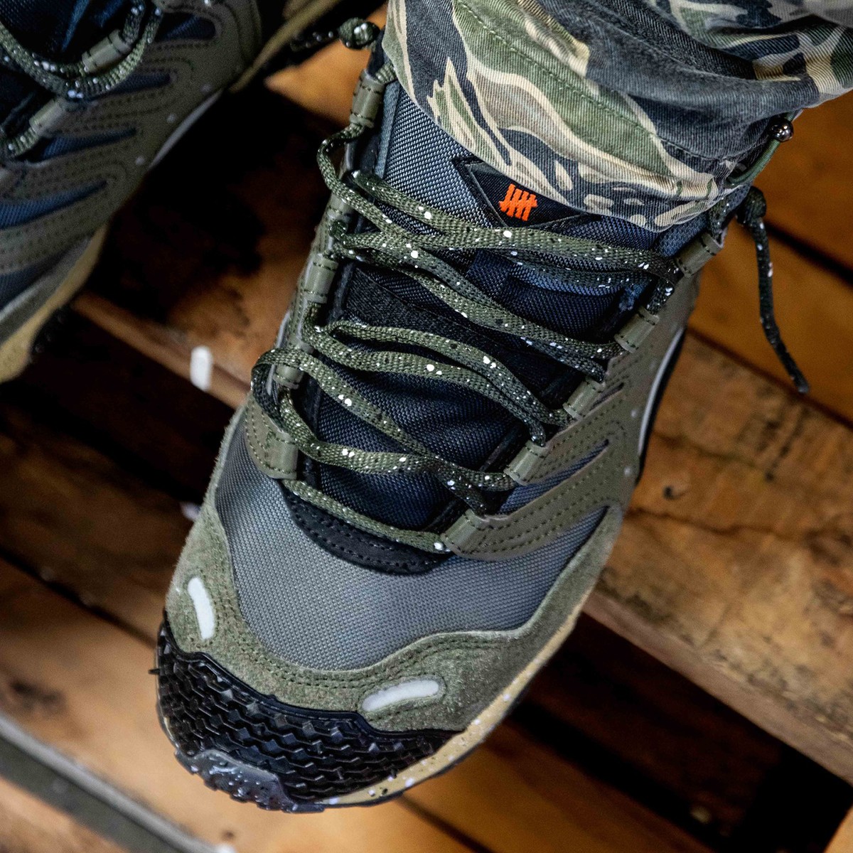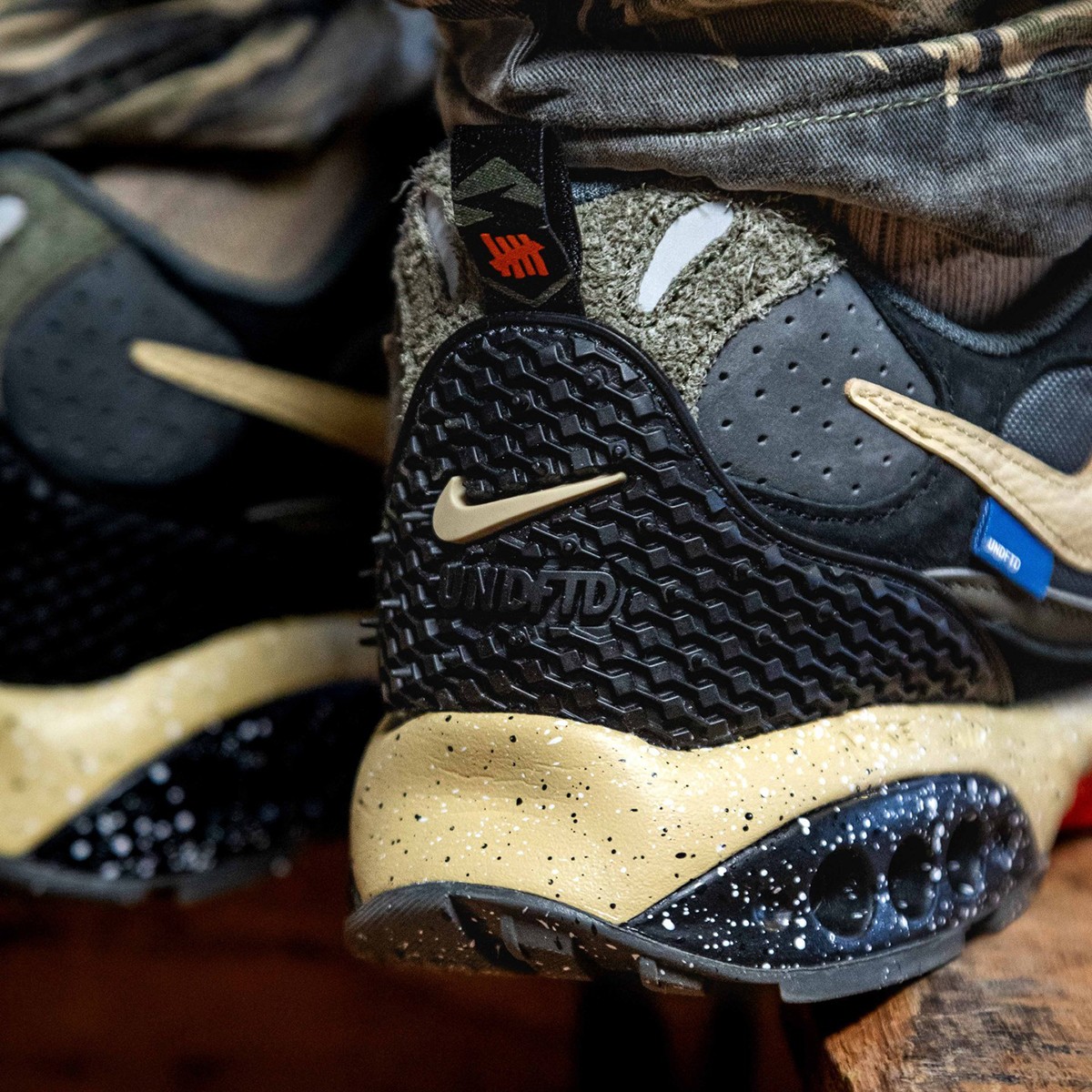 鞋舌、鞋侧标以及后跟处均印有 UNDEFEATED Logo,彰显联名鞋款身份。