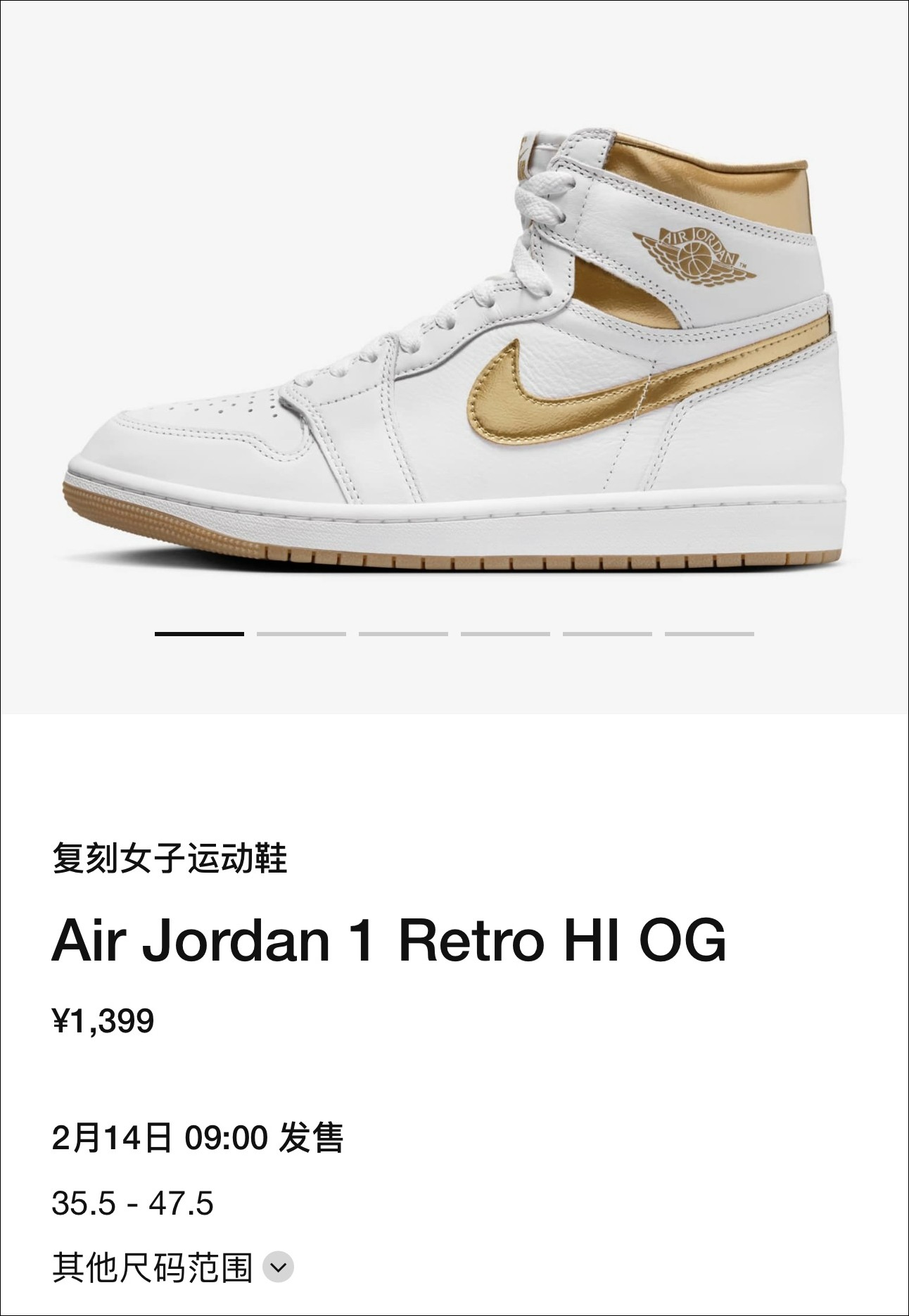 据悉,全新 Air Jordan 1 High OG “Metallic Gold” 将于 2 月 14 日情人节当天登场,喜欢的朋友千万记得定闹钟!