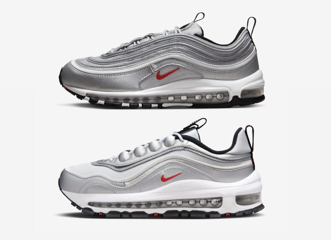 「银子弹」Air Max 97 “Silver Bullet” 曾在 2022 年复刻,目前 43 码市价来到 ¥14xx 元。