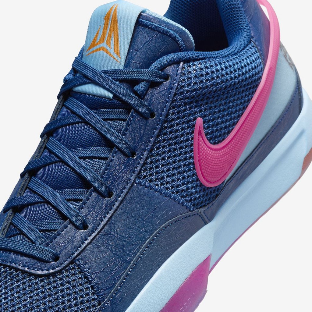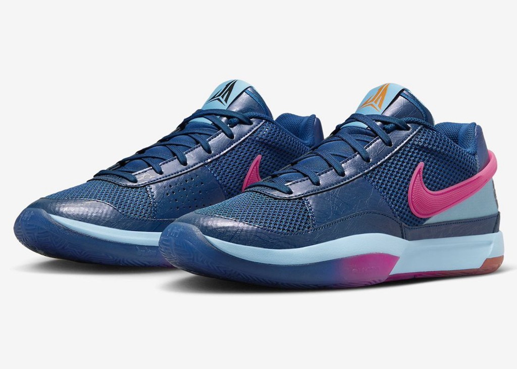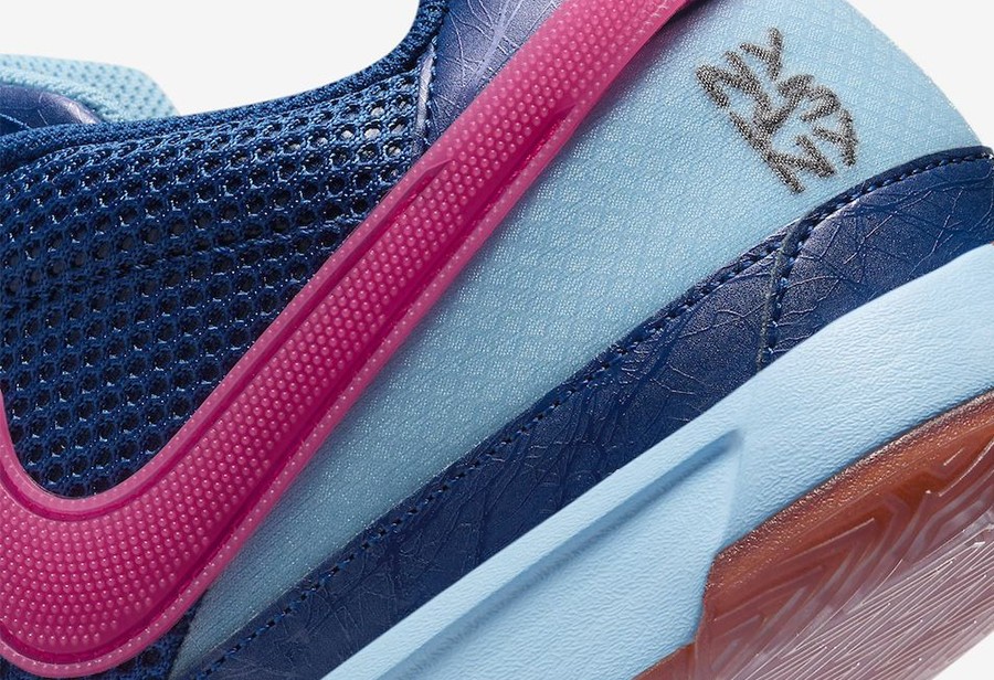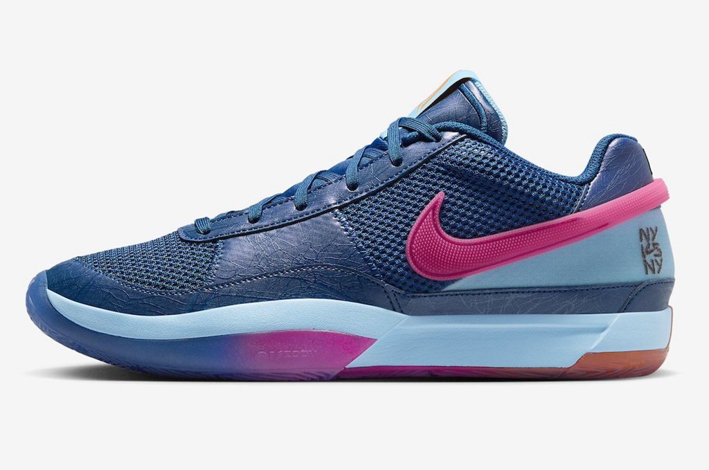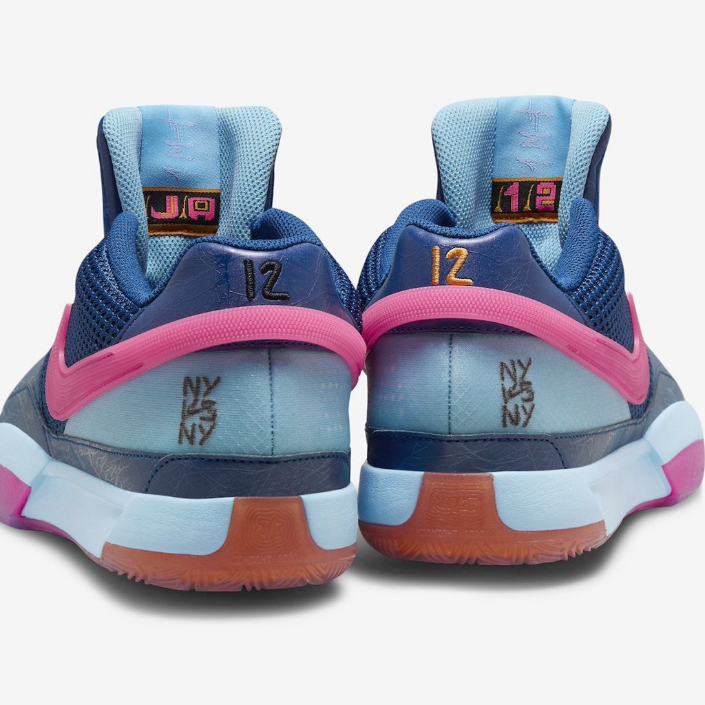 伴随着日期推移,Nike JA1 新配色仍在继续推出。 近日迎来一款以纽约街头篮球为主题的配色。 鞋面午夜蓝和粉色 Swoosh 形成反差,中底渐变则呼应鞋面颜色。 鞋舌织唛 Logo 采用不同颜色呈现鸳鸯造型,一边代表纽约尼克斯的橙色, 一边则是布鲁克林篮网的黑色,都是纽约篮球的标志。 后跟刺绣则点明配色主题,增强细节表现。 外底的渐变效果也十分突出,半透明材质质感到位。 据悉,全新 Nike JA1 “NY vs NY” 将于 6 月 1 日登场。