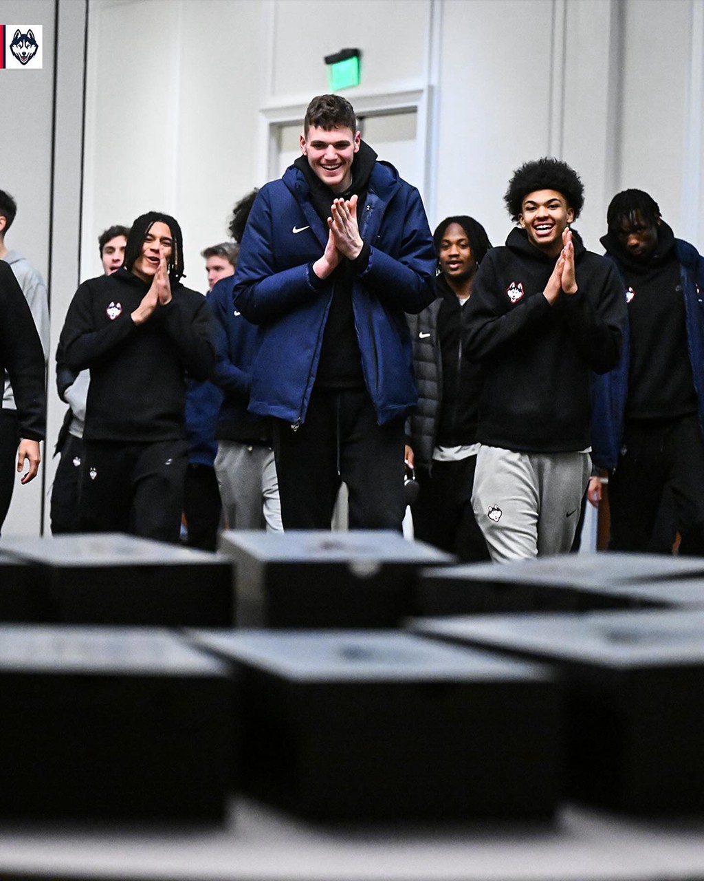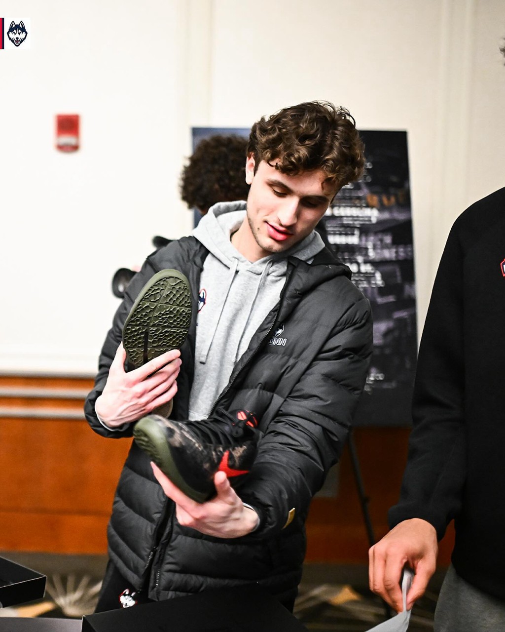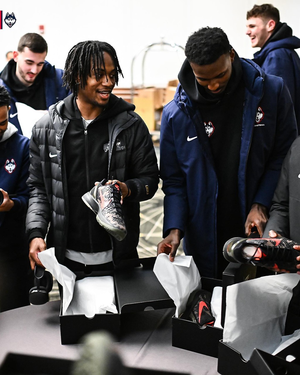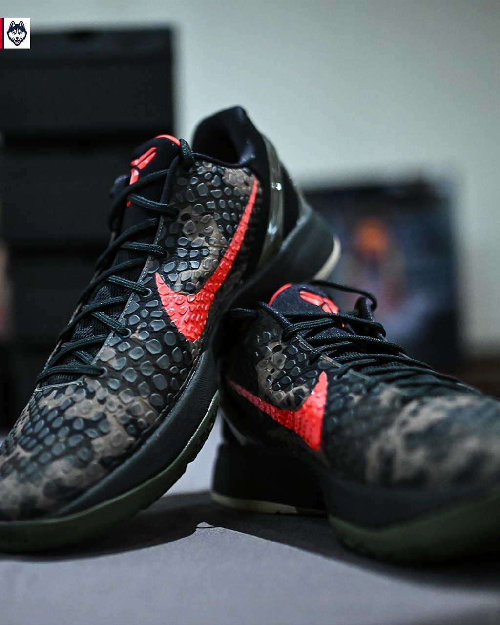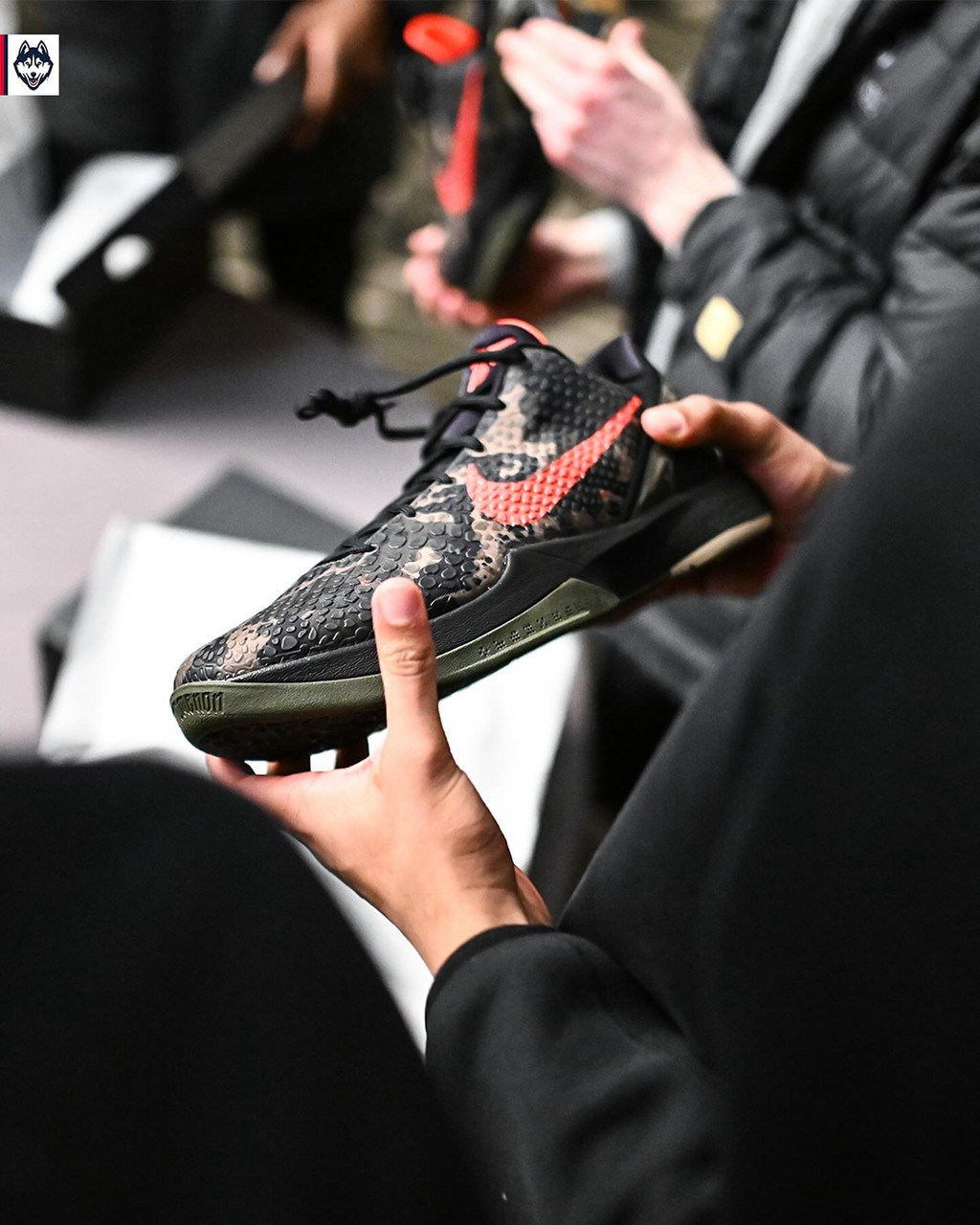 NCAA 疯狂三月激战正酣,不过在比赛间隙学校也不忘给球员们带来福利。 比如夺冠热门康涅狄格大学,就给所有球员们一人送上了一双下月即将登场的 Nike Kobe 6 Protro “Italy Camo”。 这也让球员们成为第一批将这双鞋穿上赛场的人,小编只能隔着屏幕酸一酸了。 鞋款方面,设计灵感等相信大家已经熟悉了,整双鞋的诞生是为了致敬意大利篮球传统以及科比父亲意大利职业篮球运动员乔·布莱恩特。 将于 4 月 13 日登场,各位记得提前定好闹钟! Pic via:uconnmbb