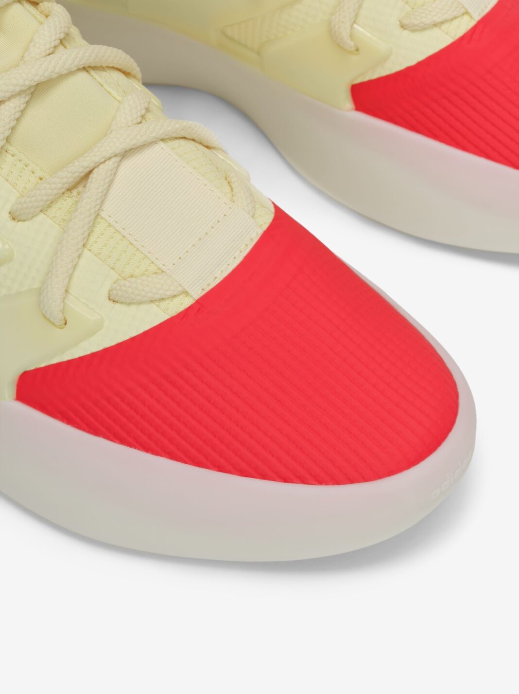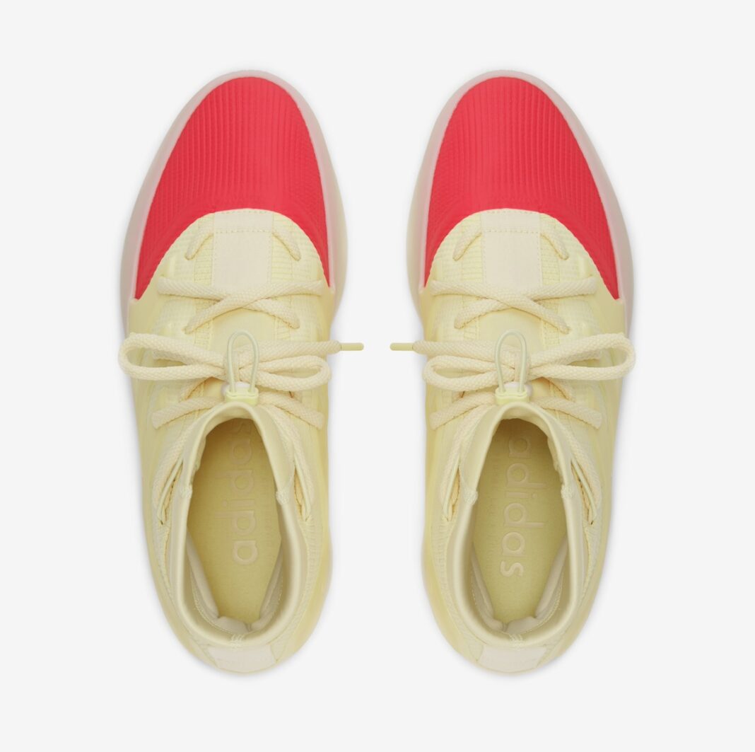 说这两双鞋颜值近似主要是因为鞋头位置均是红色装扮,鞋身则换成了浅黄色,依然有超高辨识度。