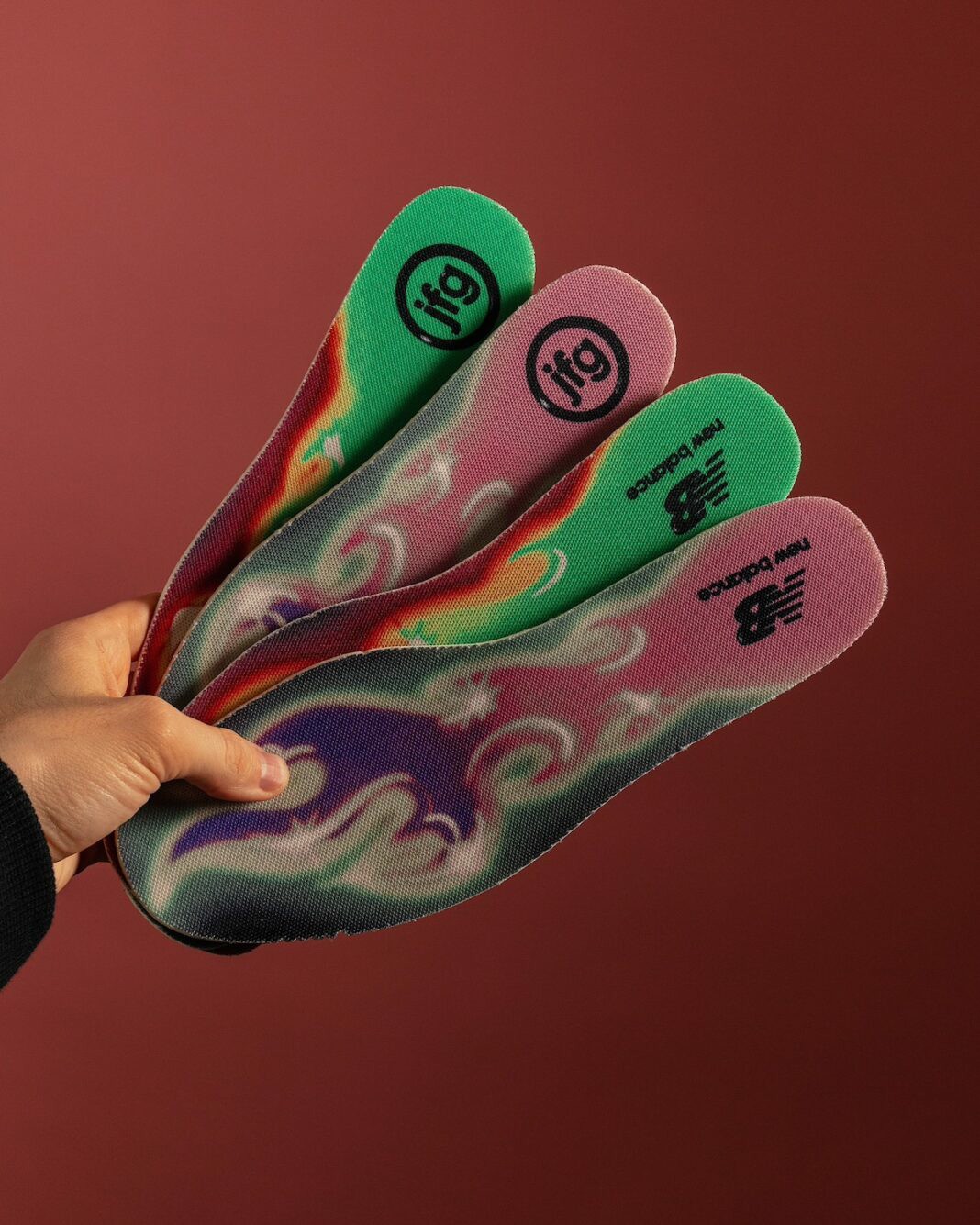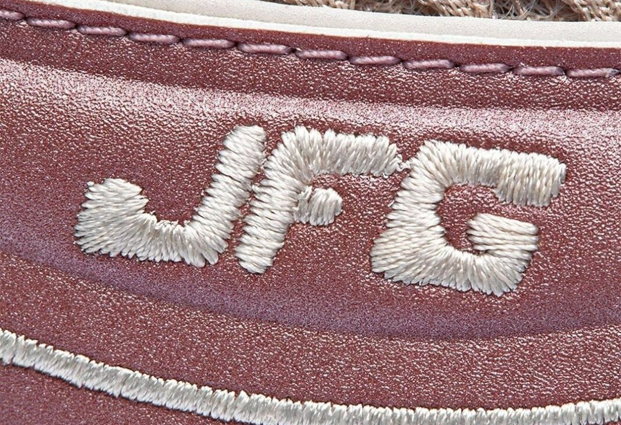 鞋头外侧绣上 JFG 字样,彰显联名身份。