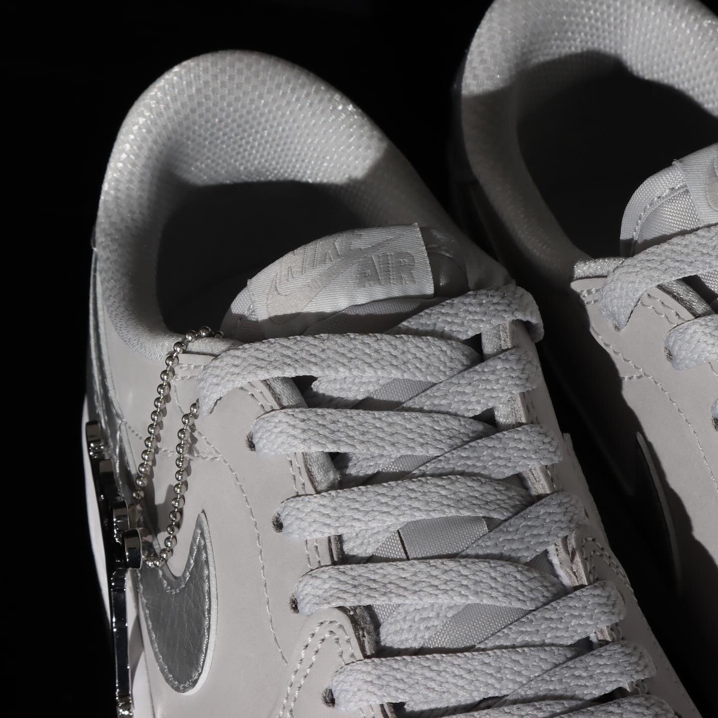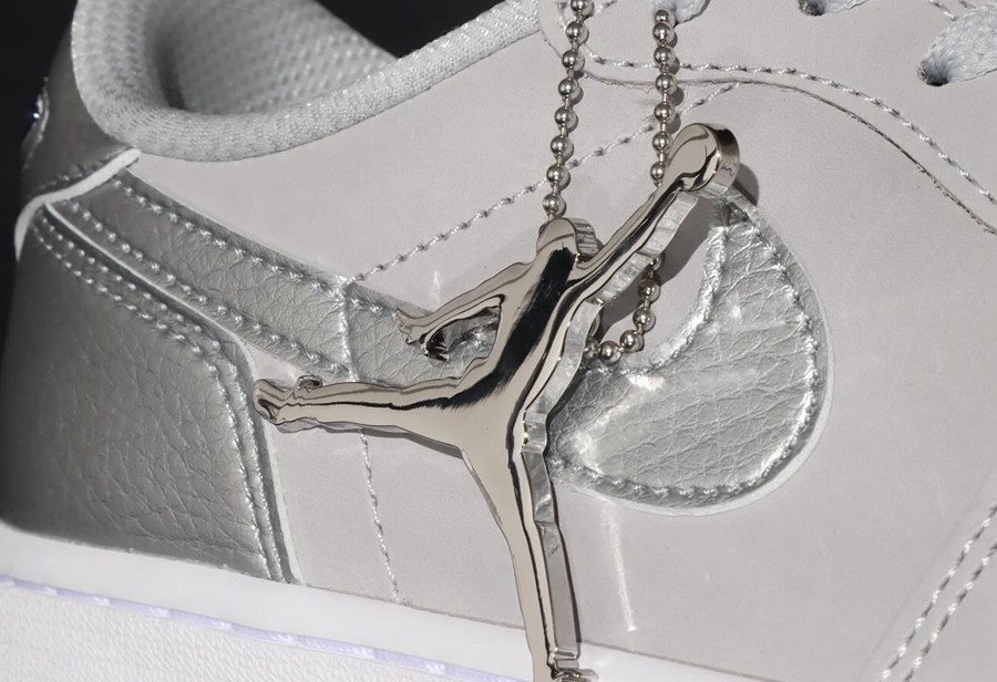 整体颜值和 CO.JP Air Jordan 1 High “Metallic Silver” 一脉相承,鞋身采用银色荔枝皮搭配浅灰色磨砂皮革呈现。