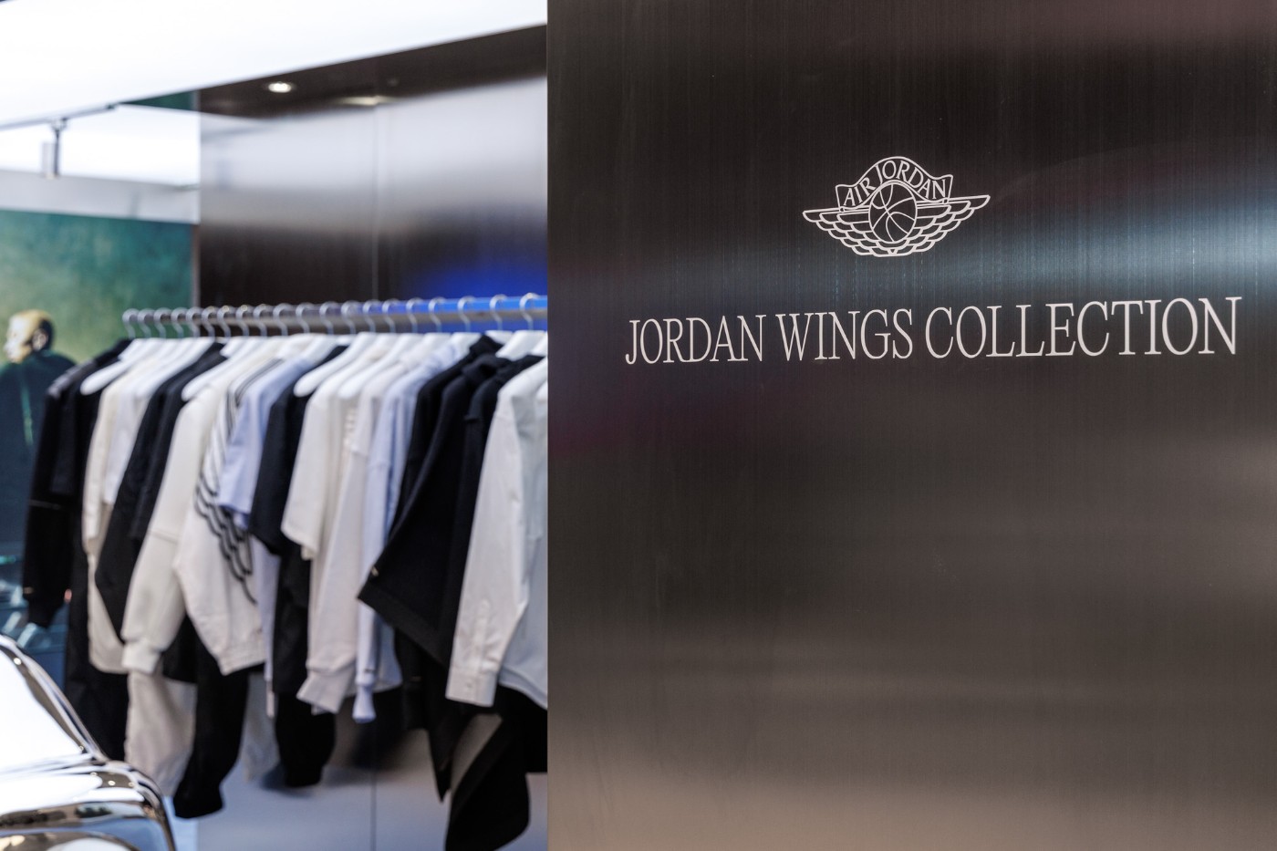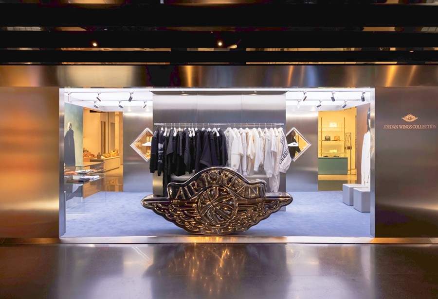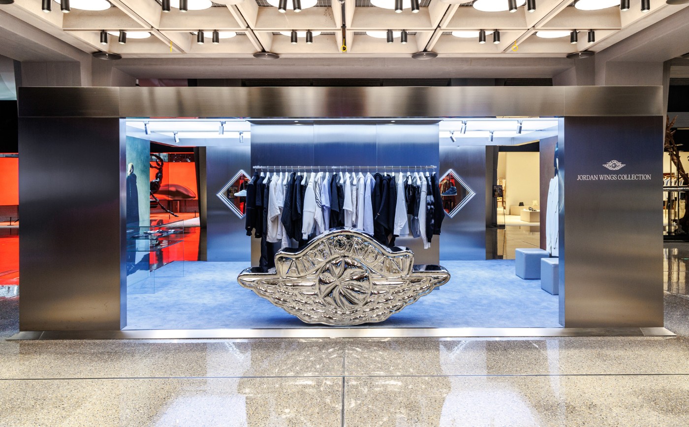 空间设计灵感源自 Jordan Wings 系列,呈现与产品一脉相承的高级、华丽氛围,带来一场视觉和触觉上的奢华之旅。