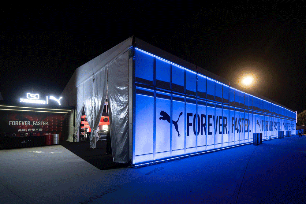 现场融合经典复古、前沿时尚、专业赛车等多面元素的丰富产品阵列,在竞速赛道的环境中,PUMA 大秀正式上演!