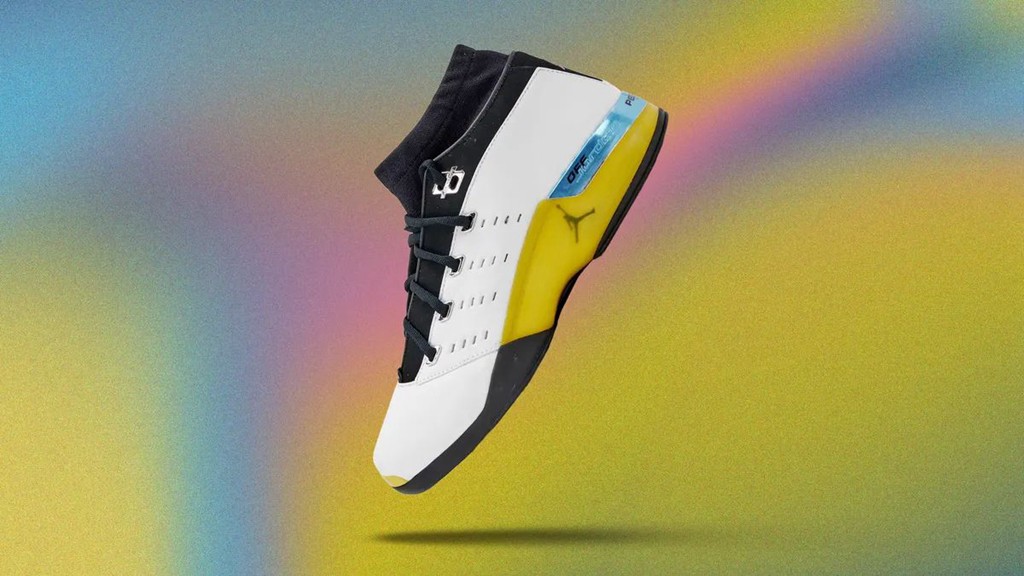 为什么这么说呢?因为设计上带回了乔丹当年拍摄广告的 Sample 样式,比元年飞翼 Logo 还早一个版本,真是回归本源了。