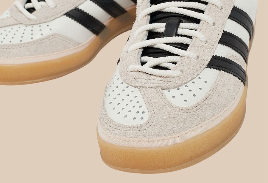 此外对于鞋型方面的改动同样值得一提,不同于常规 Gazelle Indoor 的清瘦、修长鞋型,这双 Bad Bunny x adidas Gazelle Indoor 进行了独特的加宽、加厚处理,整体廓形更有「面包鞋」的味道。