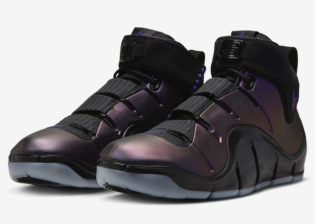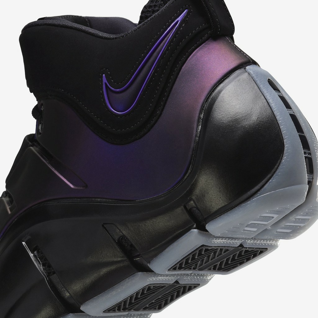 继水果麦片后,下一双将登场的 LeBron 4 是人气颇高的茄子配色,黑紫的金属渐变效果相当帅。
