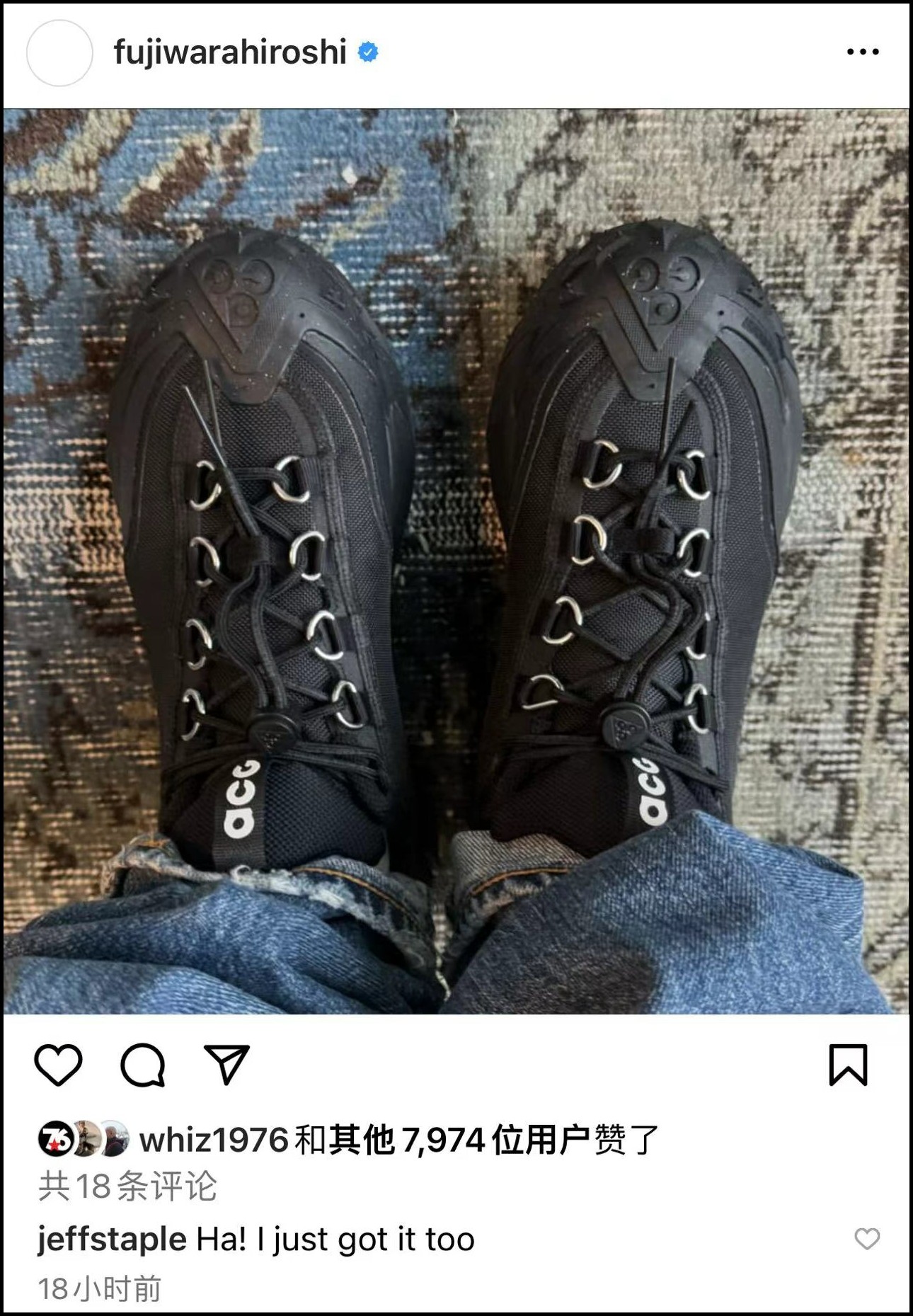 藤原浩的评论区还得到 Jeff Staple 互动,表示自己也有同款。