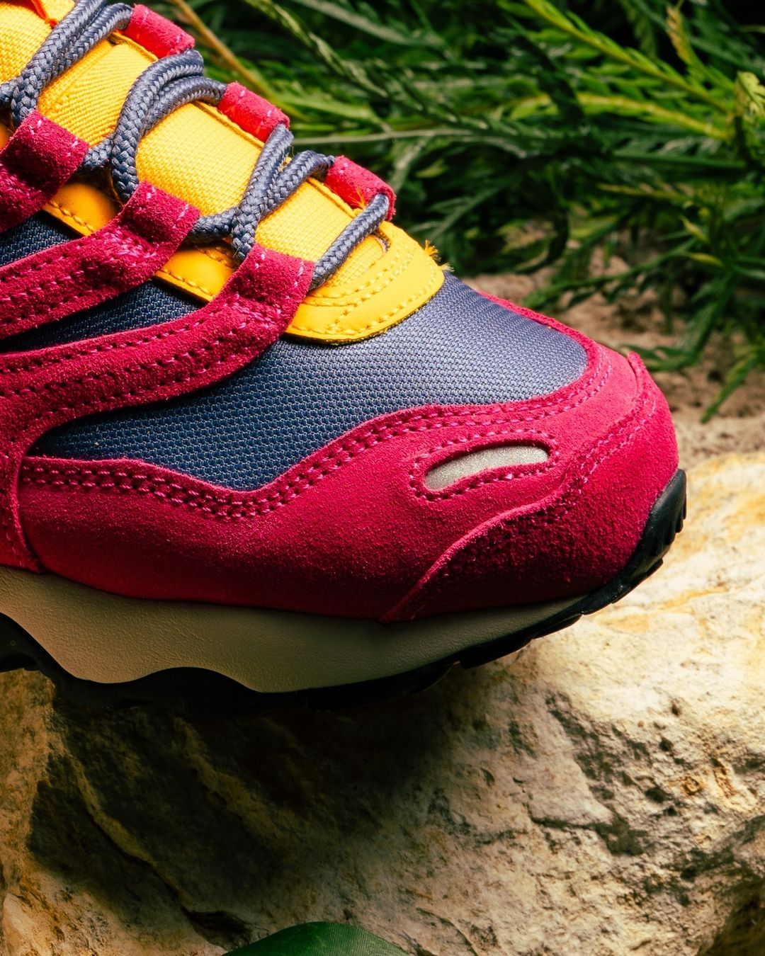 该鞋形主打户外越野风格,鞋身设计上可以感受到山系气质。