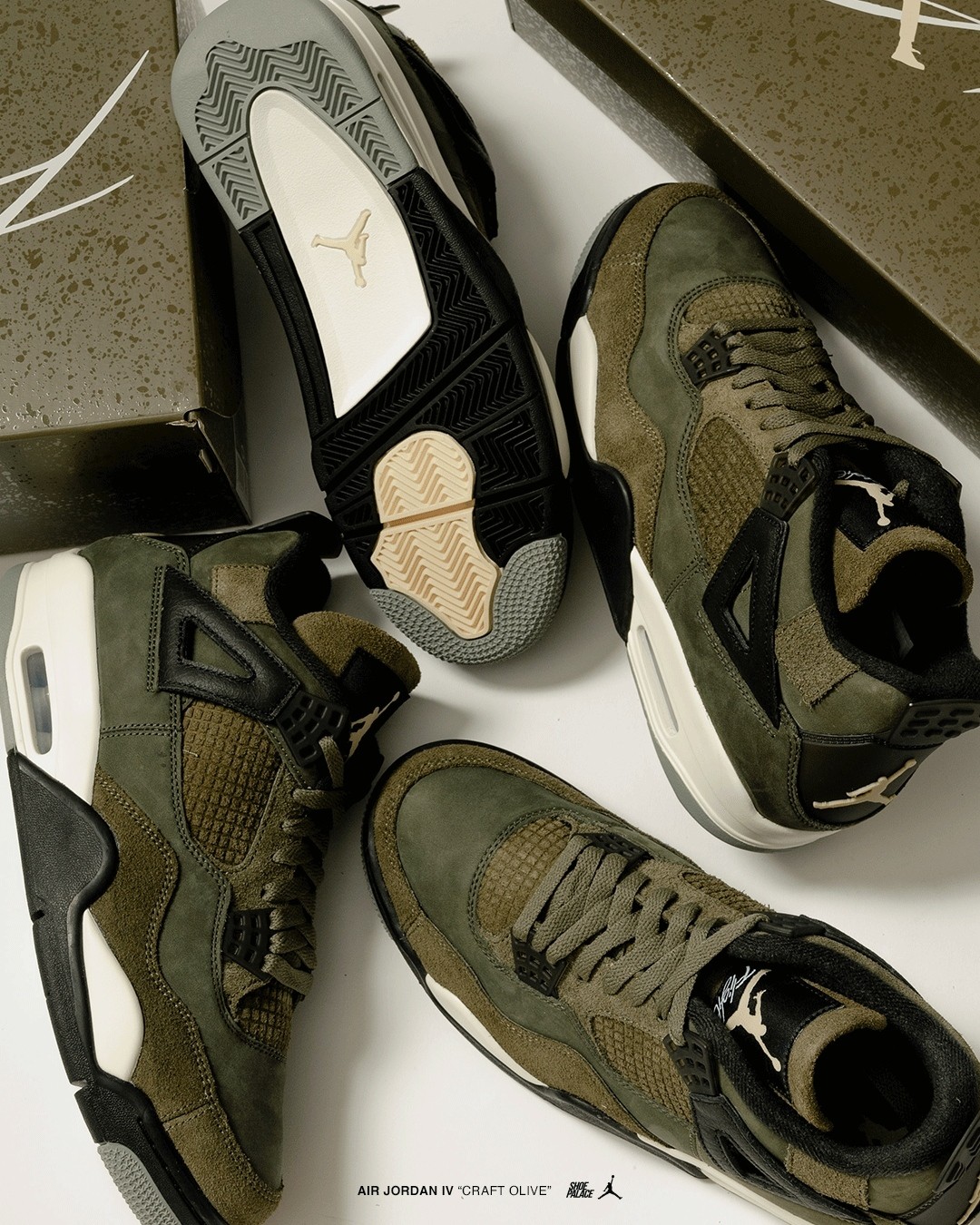 最便宜 AJ4 的头衔依然由去年登场的 Air Jordan 4 Craft “Olive” 摘得,而且相比年初价格进一步下探,如今千元出头即可拿下。