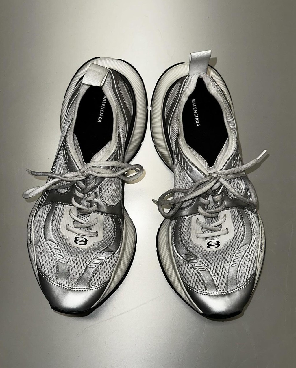 BALENCIAGA 近几年绝对算得上双双爆款,凭借着夸张独特的鞋型,在鞋圈占据着一条只属于他们的赛道。 近日,巴黎世家设计师亲自晒出了最新鞋款,命名为 CIRCUIT。 外观方面还是延续夸张放大的复古跑套路,银色网眼鞋面和浮夸外底组合在一起,已经成为一种潮流符号。 不过这双相较于此前的 3XL 之类的,显得没那么厚重了,不知道上脚会不会轻盈一些。 目前,全新 BALENCIAGA CIRCUIT 现已上架,感兴趣的各位不妨保持关注。 Pic via:john________white