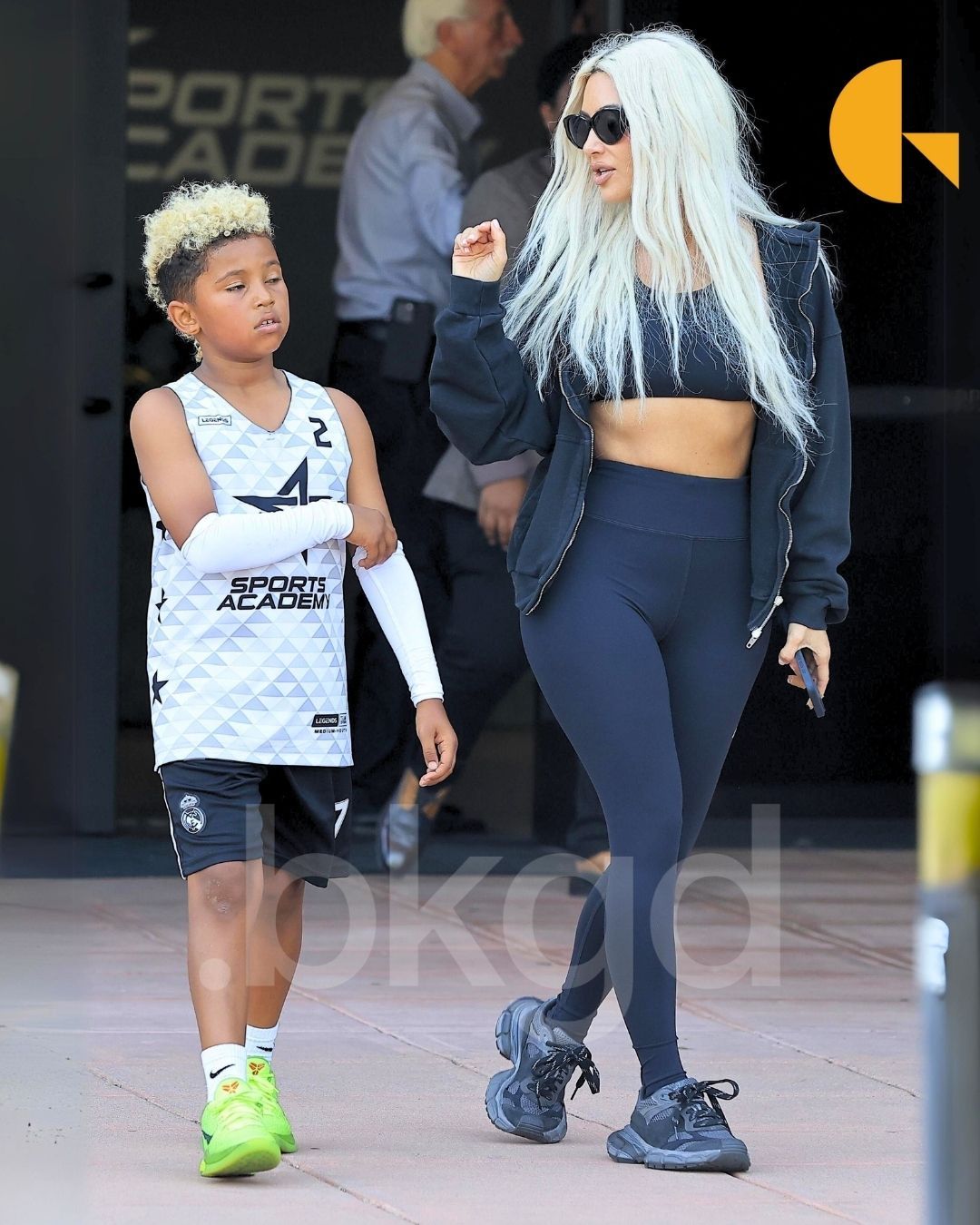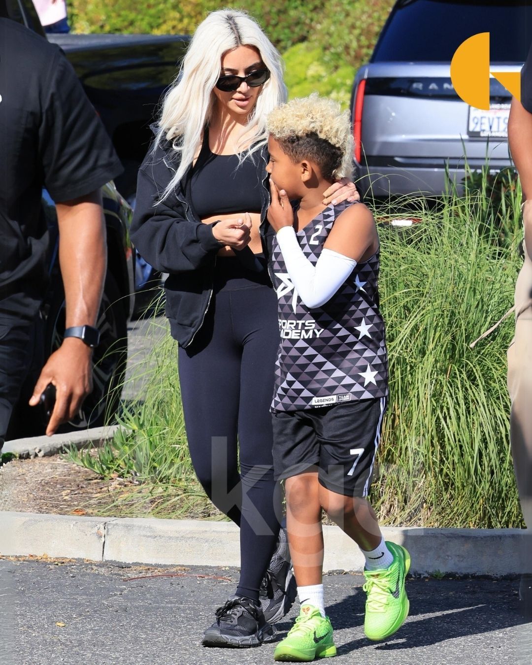 反观卡戴珊这边,带着儿子 Saint West 前来参加比赛,Saint West 上脚了一双「青蜂侠」科比 6。