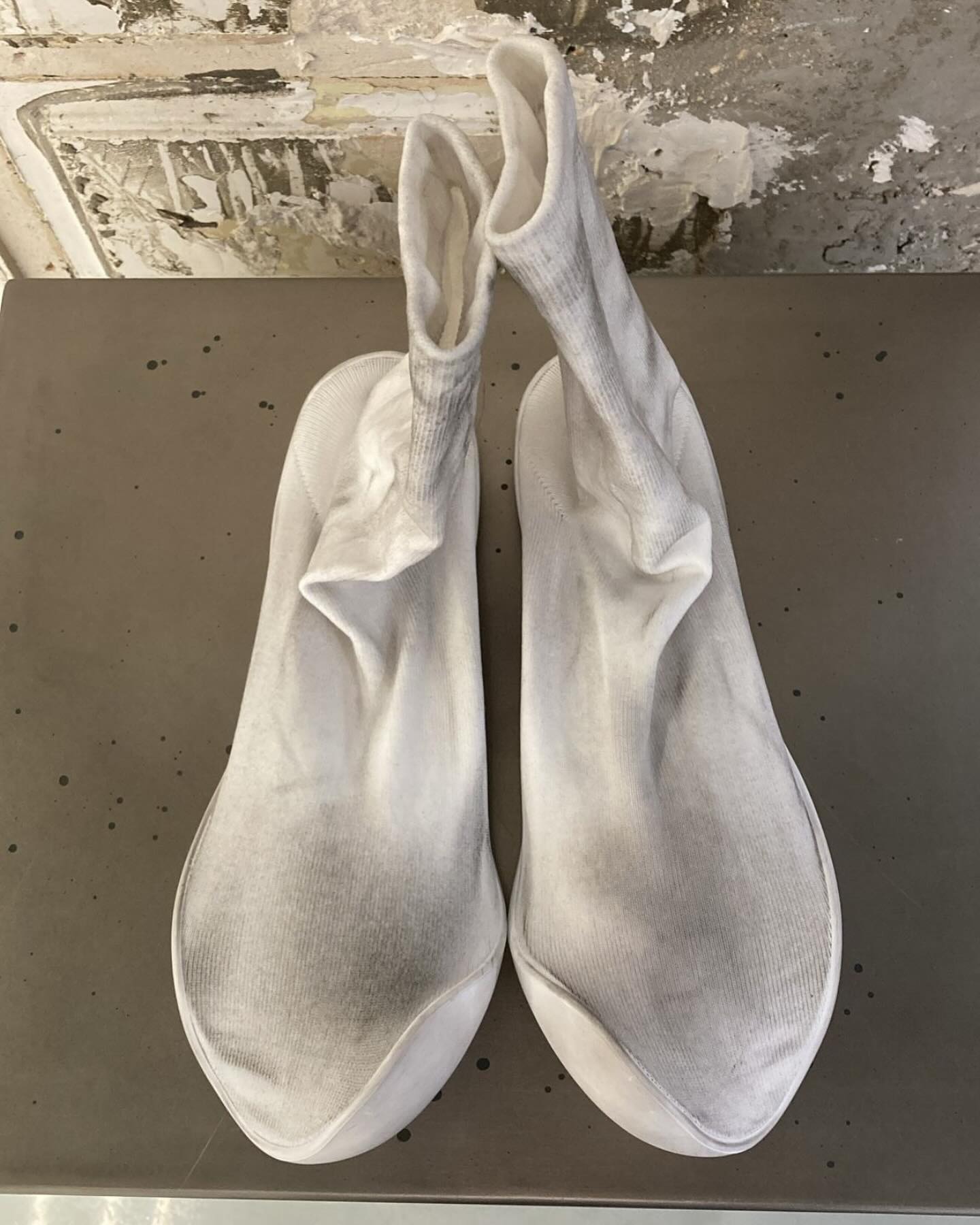 不知是为了和一身的全白相匹配,还是苦于 Yeezy Pods 产能不足,侃爷上脚了这双巴黎世家「袜子鞋」。