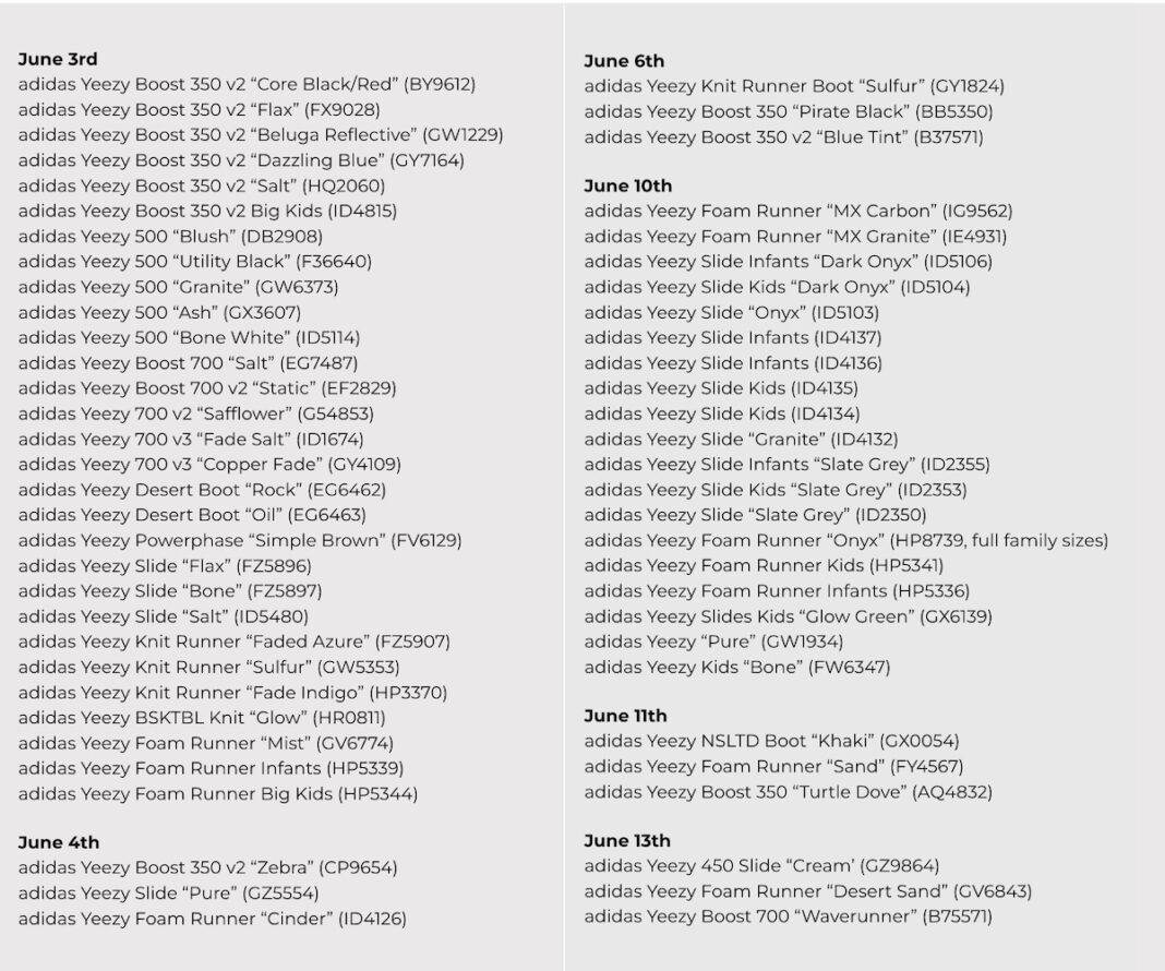 近日,adidas 终于放出了一枚 “重磅炸弹”,一份 6 月的 Yeezy 系列补货清单浮现网络。