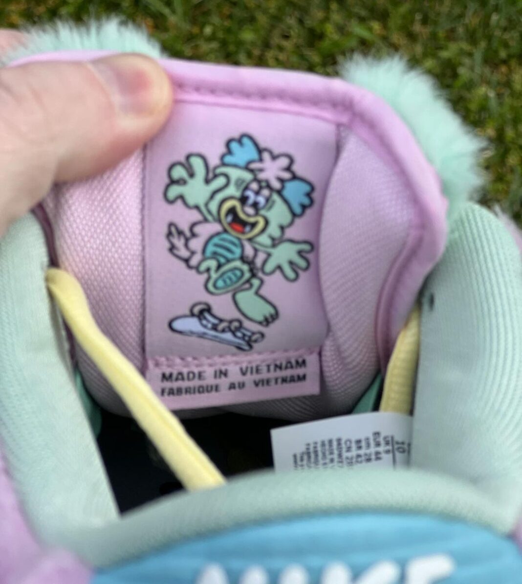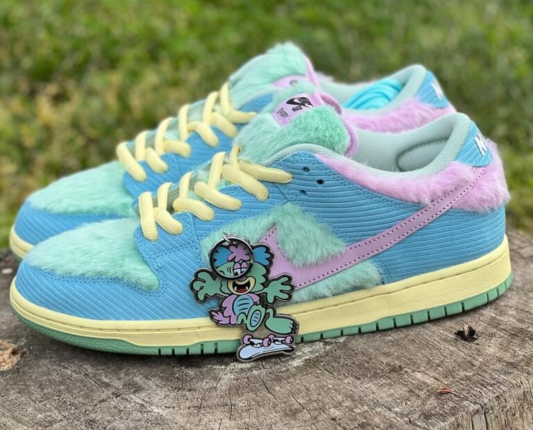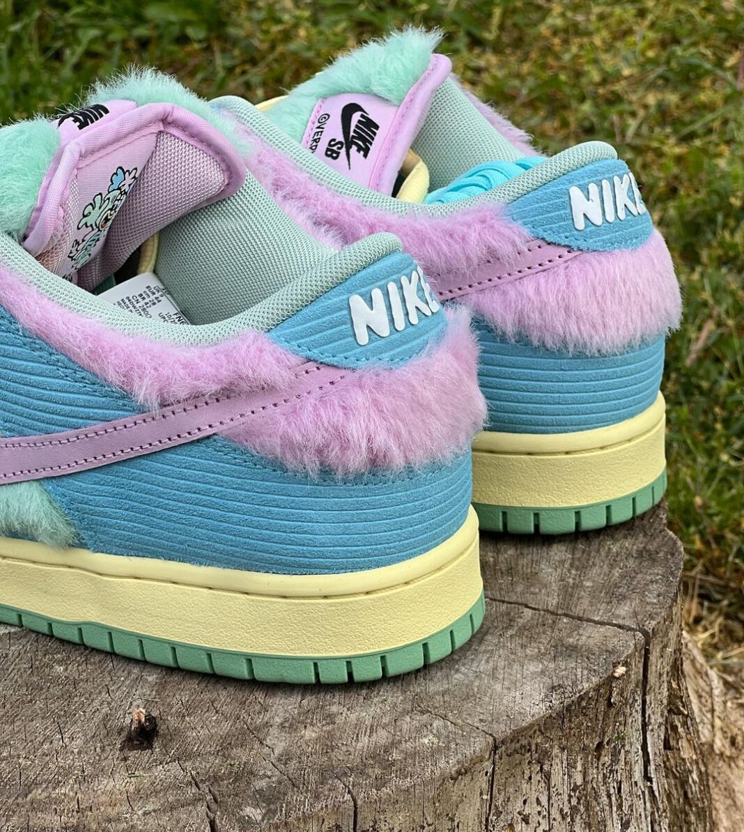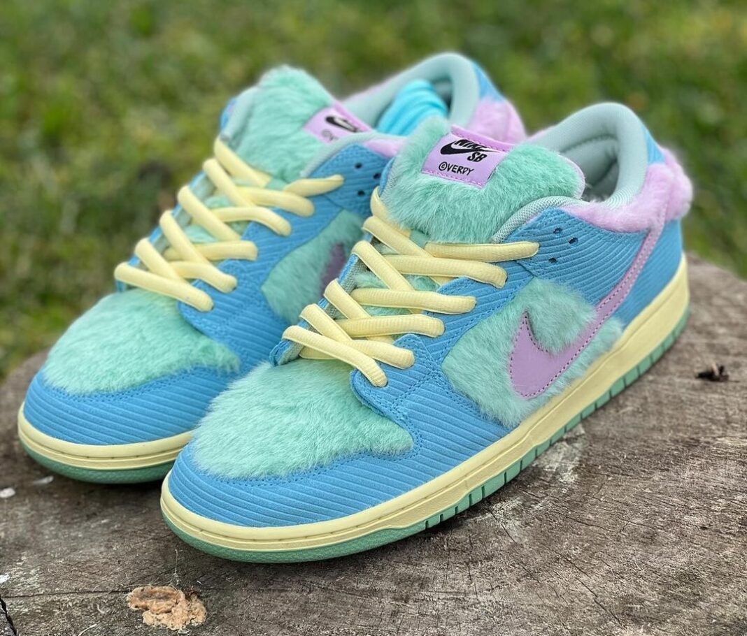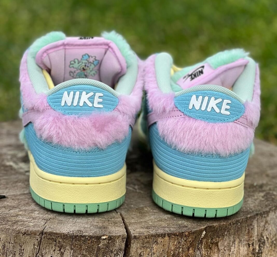 这双鞋的灵感来自于 Verdy 创作的一位名叫 Visty 的卡通角色,不仅是配色做到了还原,同样也模仿出毛绒质感。
