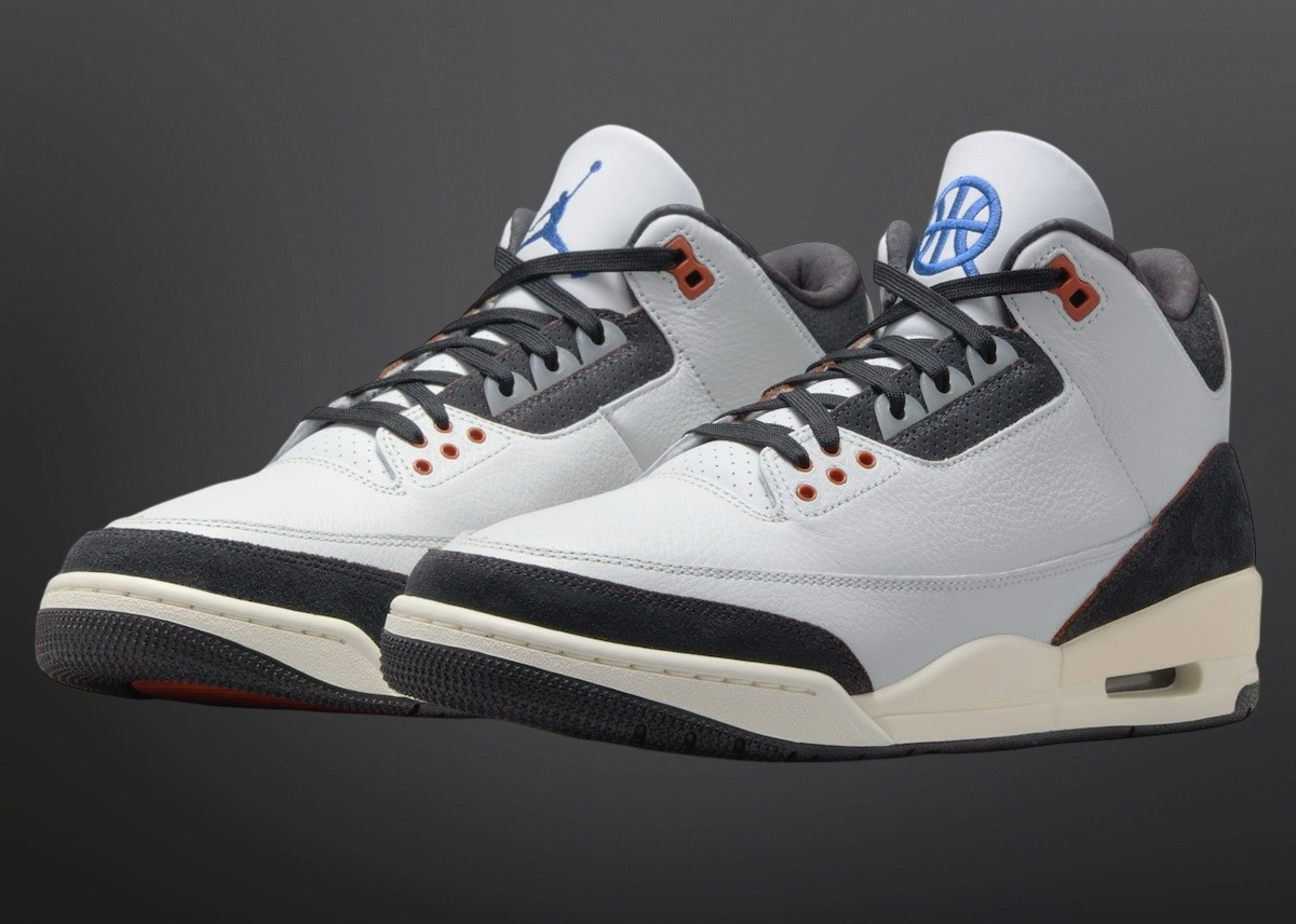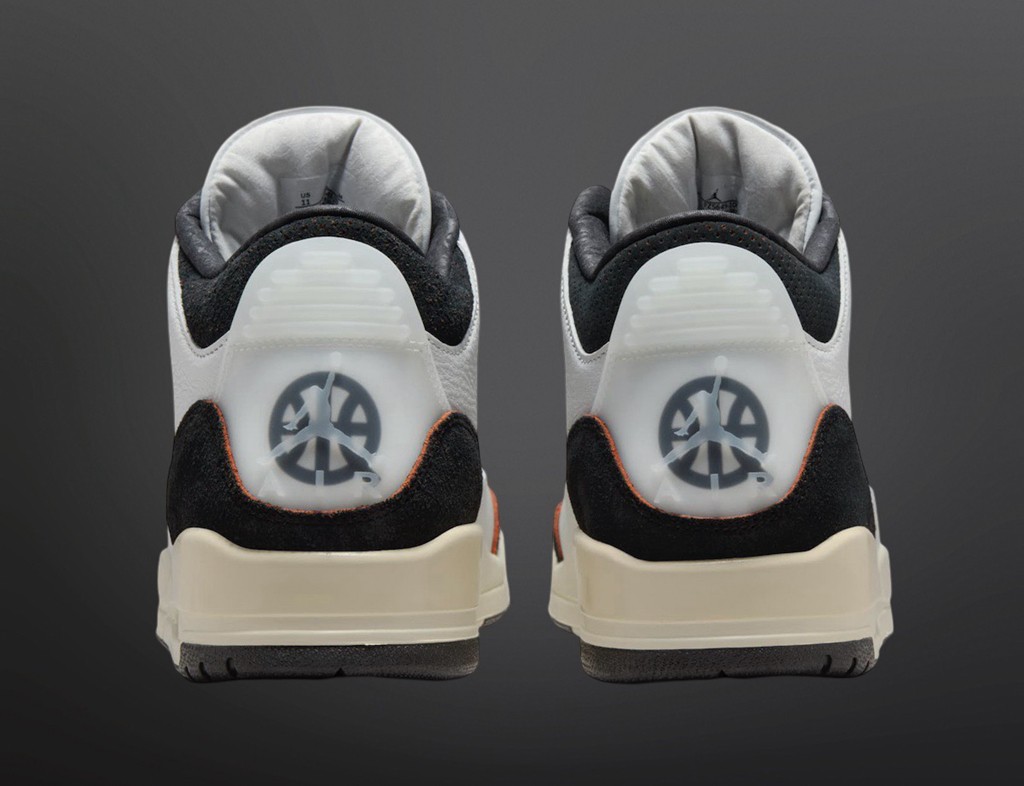 Air Jordan 3 “Quai 54” Logo 明显增多,除了鞋舌外,还有半透明的后跟内部,设计规格明显高于 Air Jordan 1 Low。
