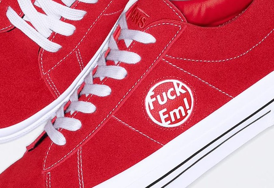 不过在这次的联名上,换成了极具 Supreme 特色的一句粗口,街头叛逆感尽显。