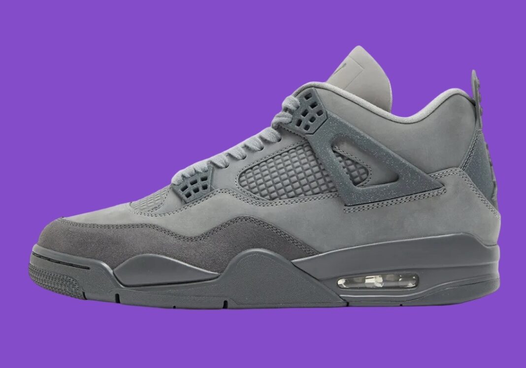 撞脸 KAWS 联名的巴黎 AJ4,将不同明度的灰色,呈现出丰富层次。