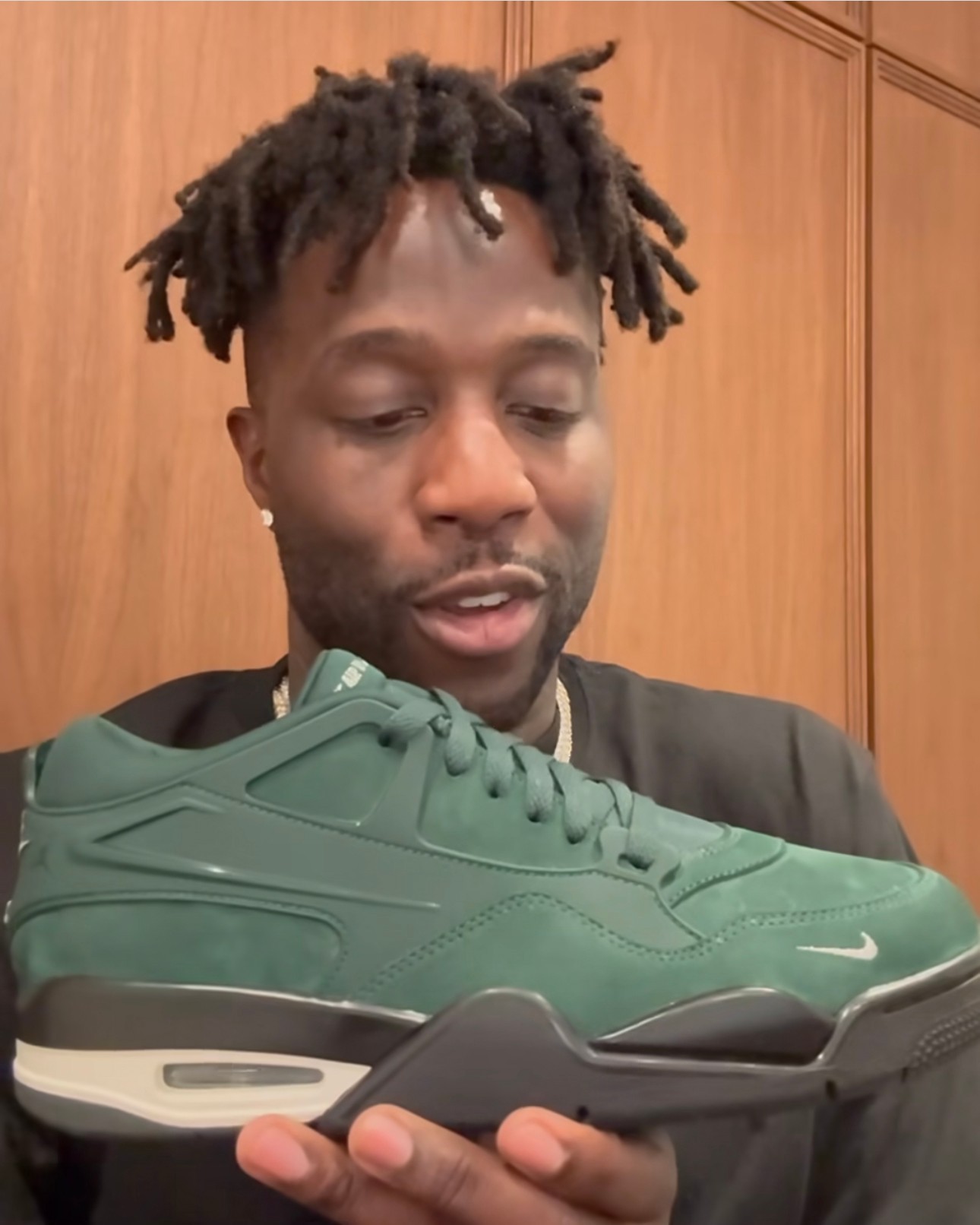 这一次双方以 Jordan Brand 全新打造的 Air Jordan 4 RM 为蓝本,一袭墨绿色覆盖鞋身。