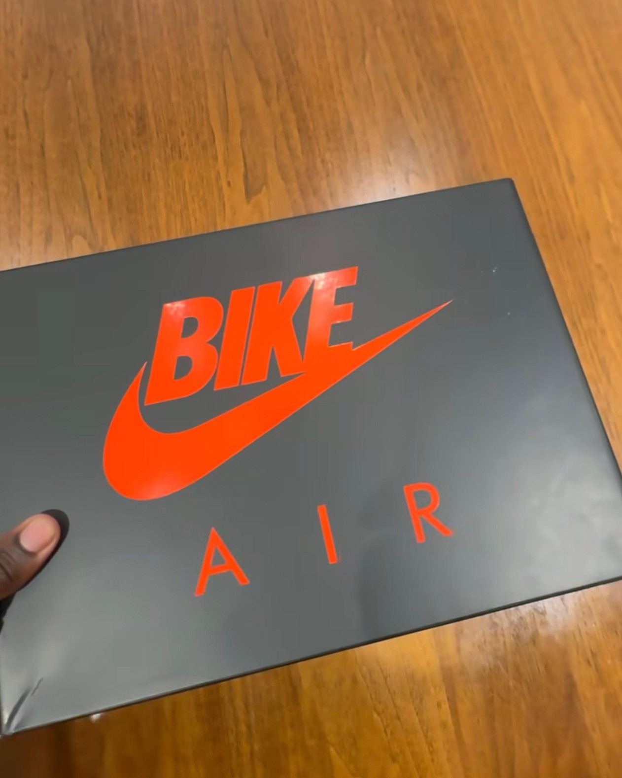比如鞋舌上的 Bike Air By Jordan,后跟经典 Nike Air 标志改为了 Bike Air 标志。