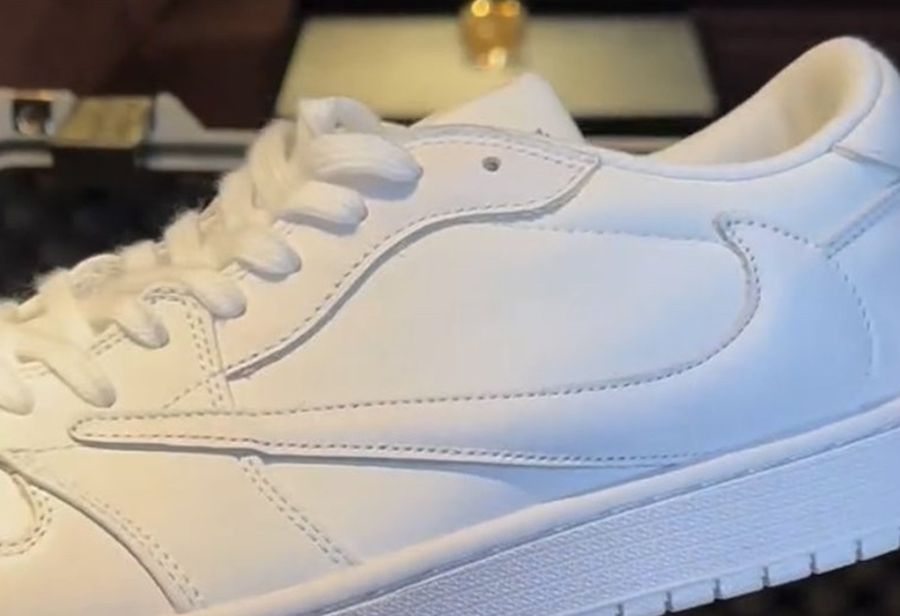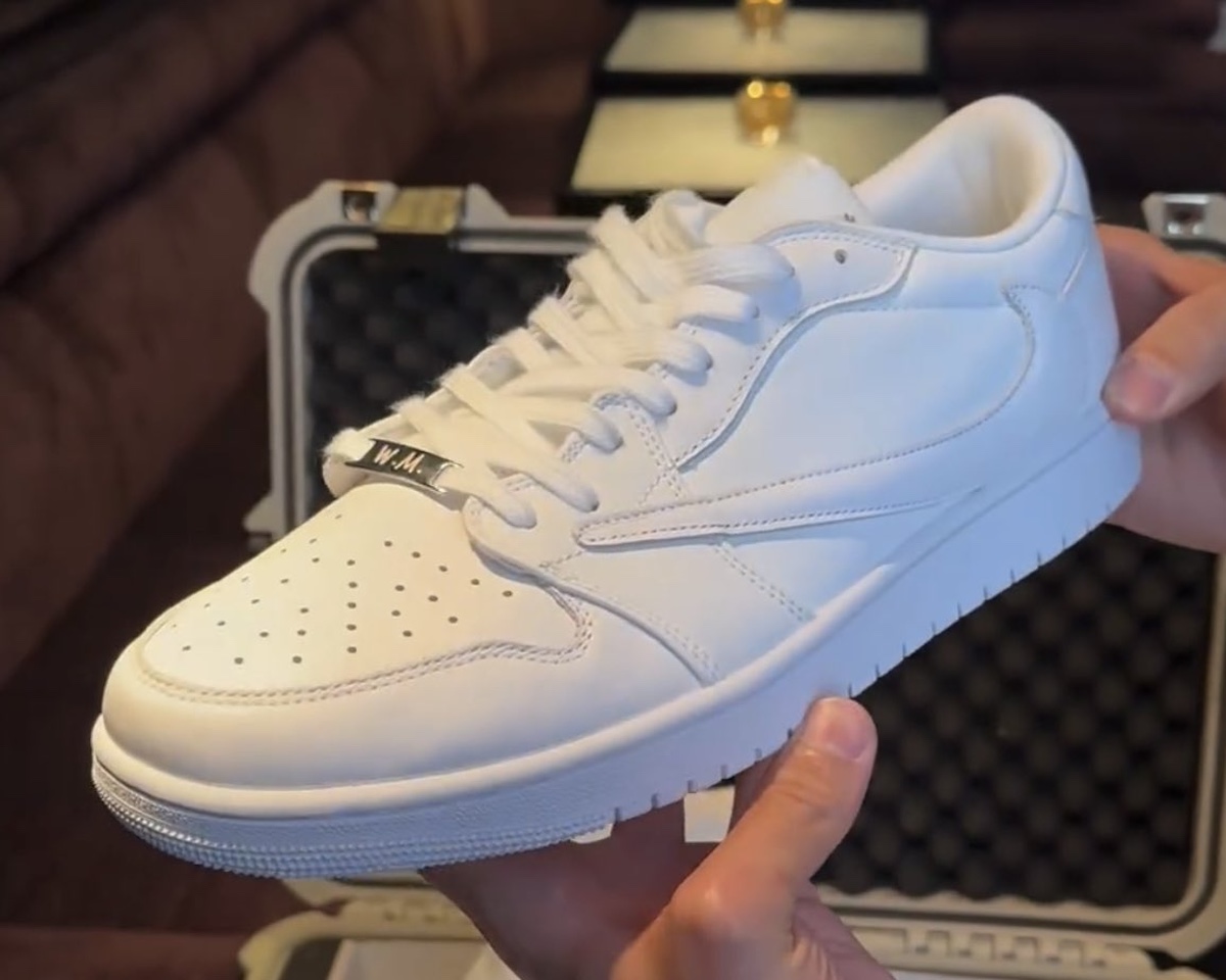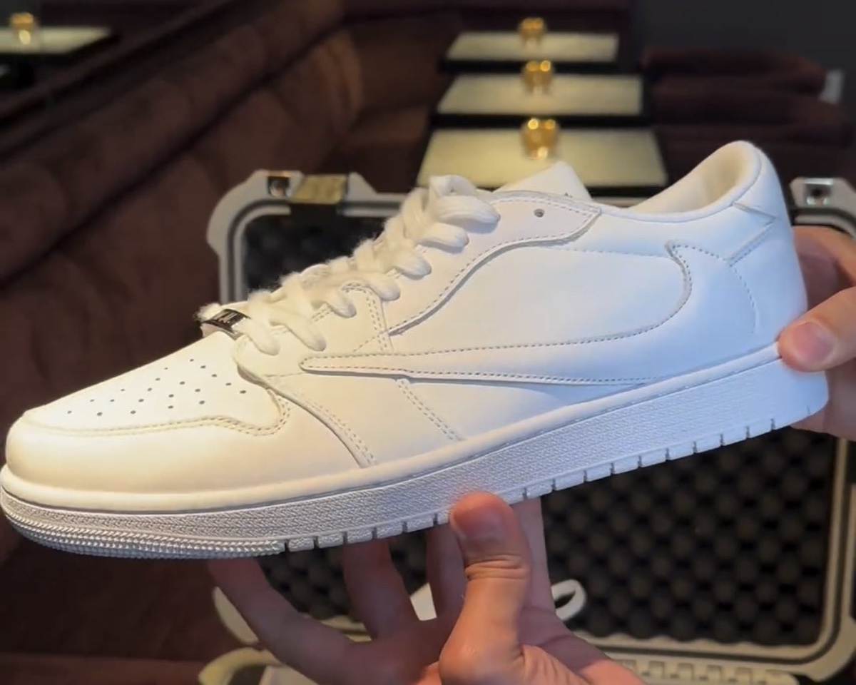 「倒钩 AJ1」又有新配色曝光了,最近网络上浮现一双纯白配色的 Travis Scott x Air Jordan 1 Low “White Party”。