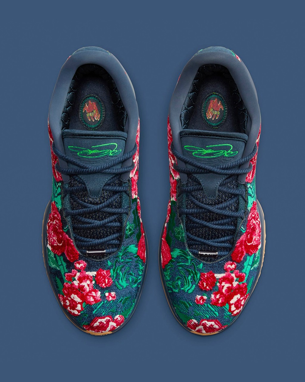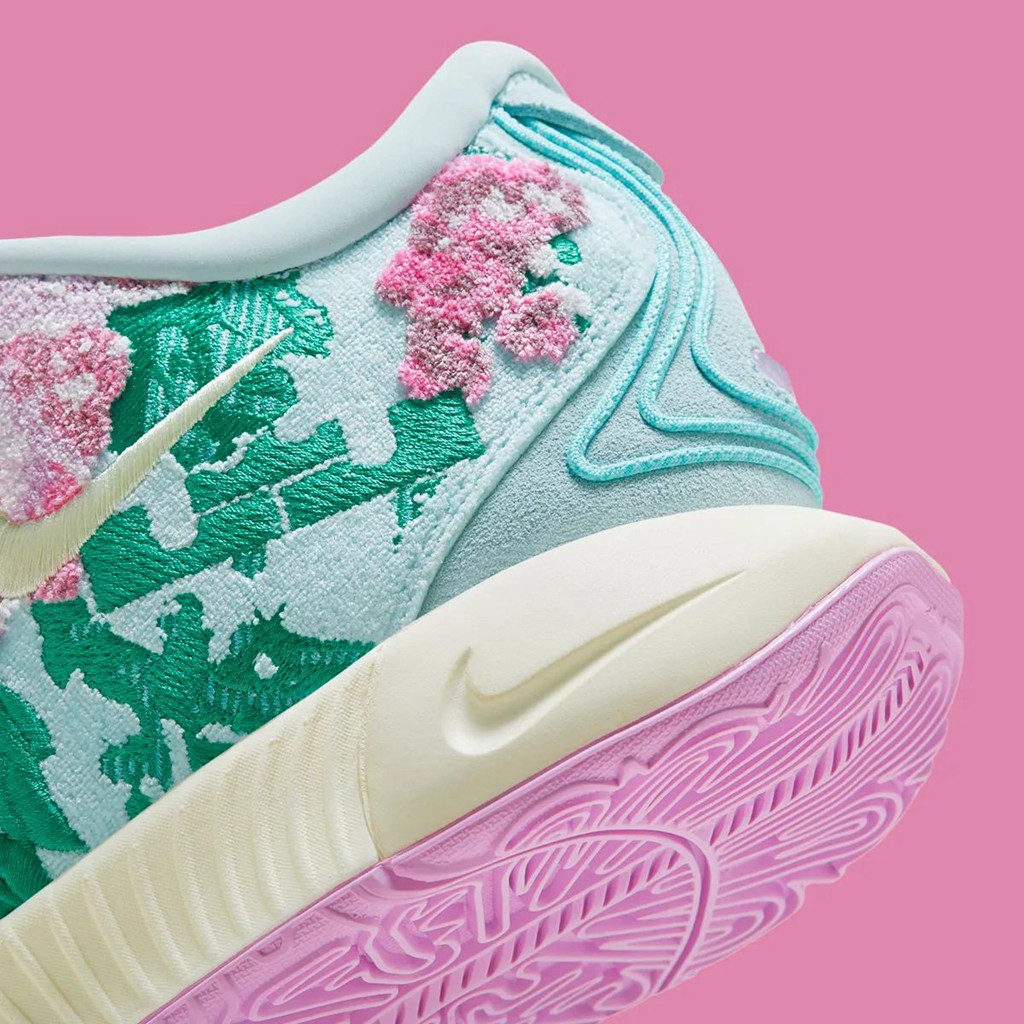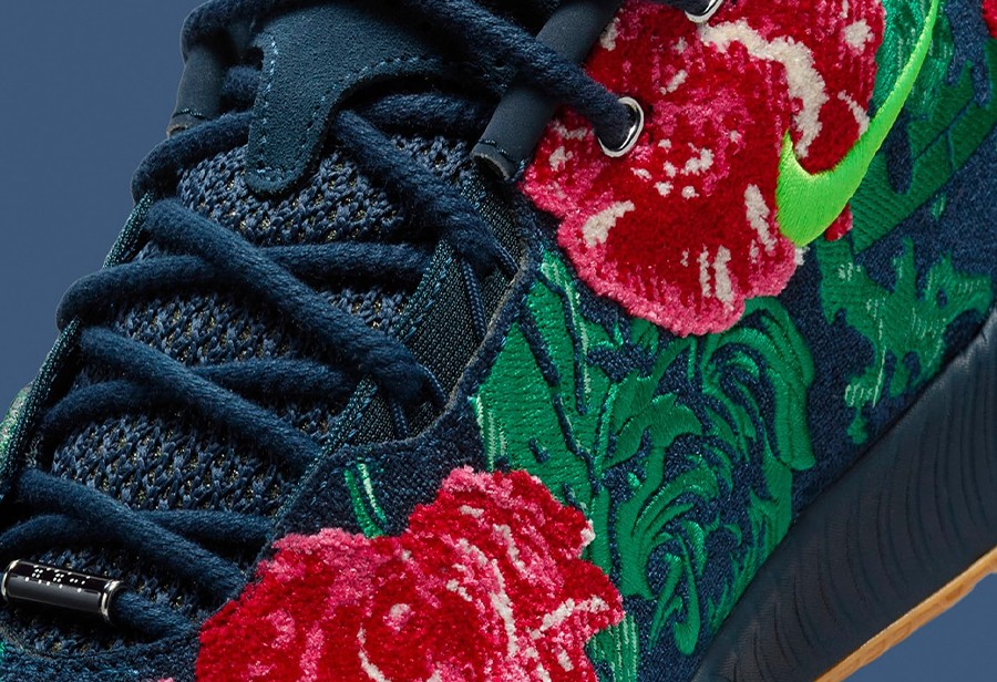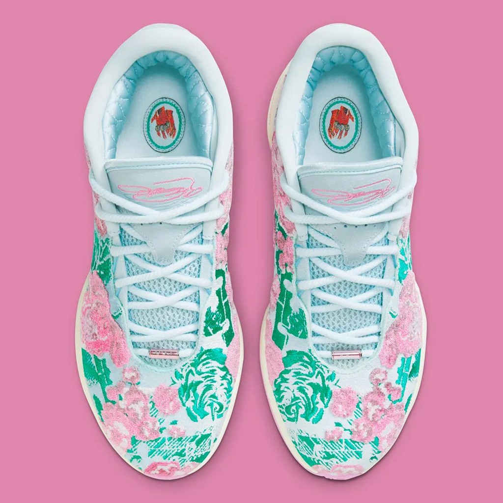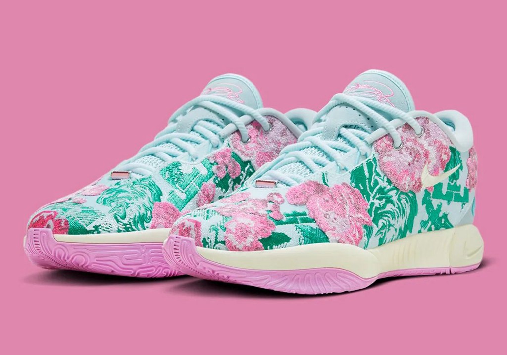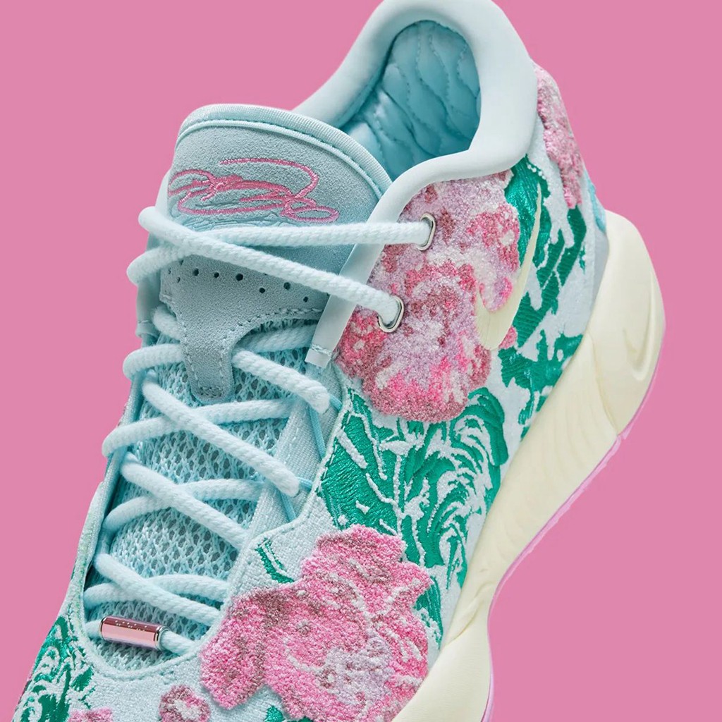 不光花卉,仔细看还能发现狮子头和皇冠 Logo 这些詹姆斯个人标志性的元素。