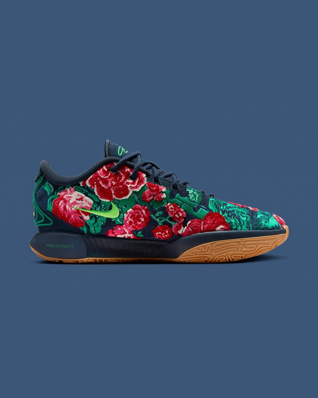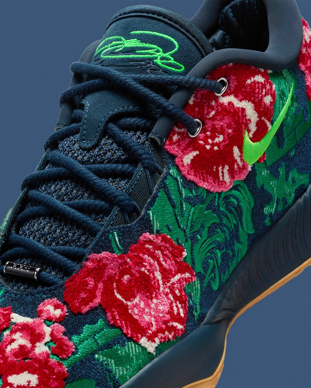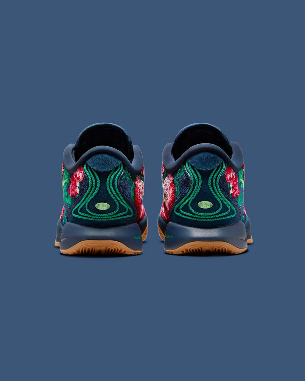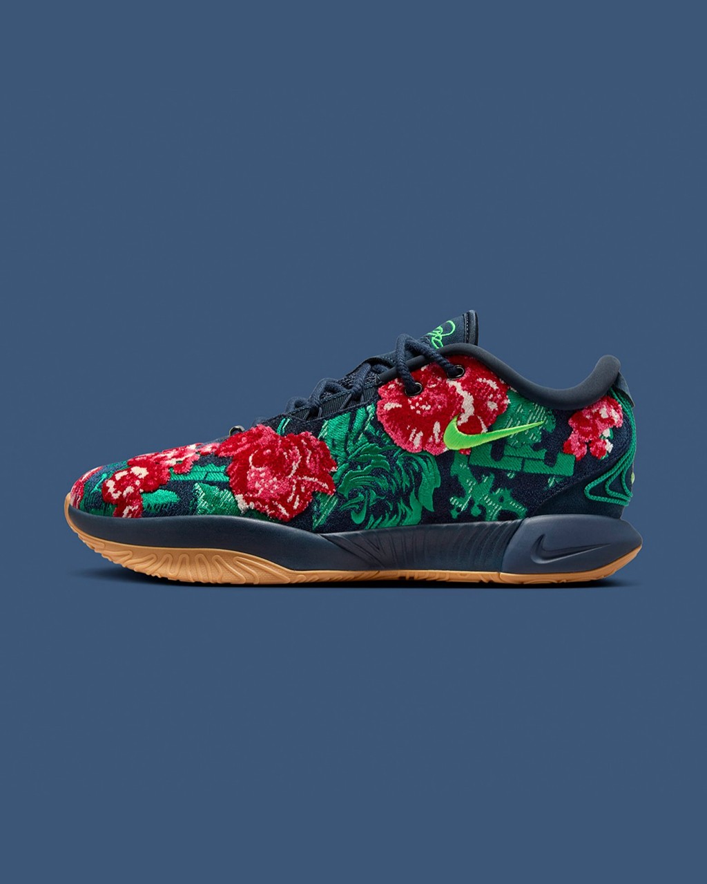 不光花卉,仔细看还能发现狮子头和皇冠 Logo 这些詹姆斯个人标志性的元素。