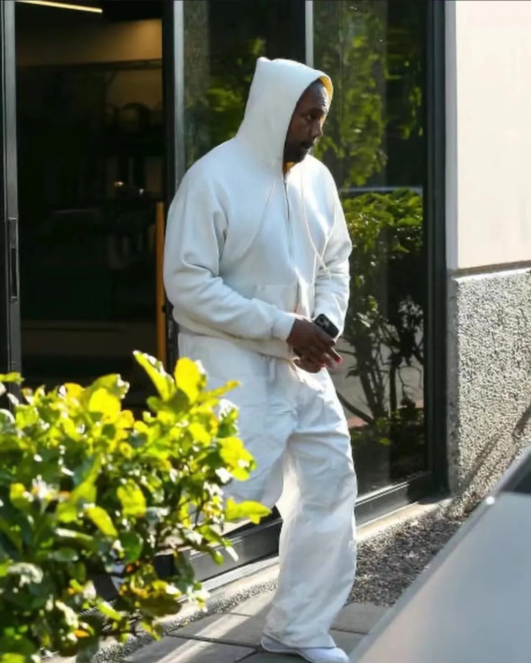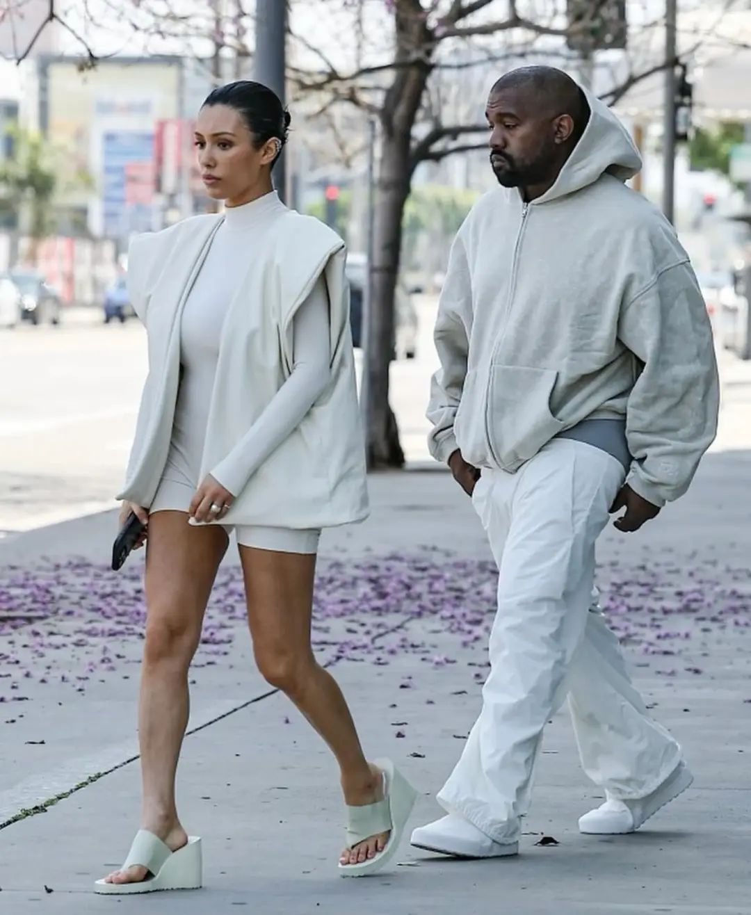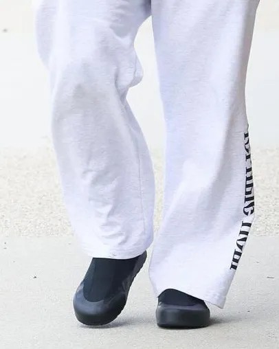 鞋款整体造型与 Yeezy Pods 如出一辙,不过侃爷的穿搭从 ALL BLACK 改为纯白的 CLEAN FIT 风格。