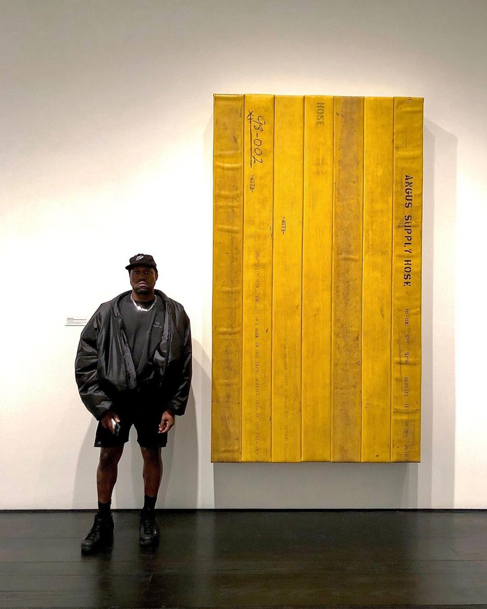 21 年的时候,侃爷造型看上去还很正常,脚踩 CDG x Nike「蚊香喷」在艺术博物馆留下了这张照片。