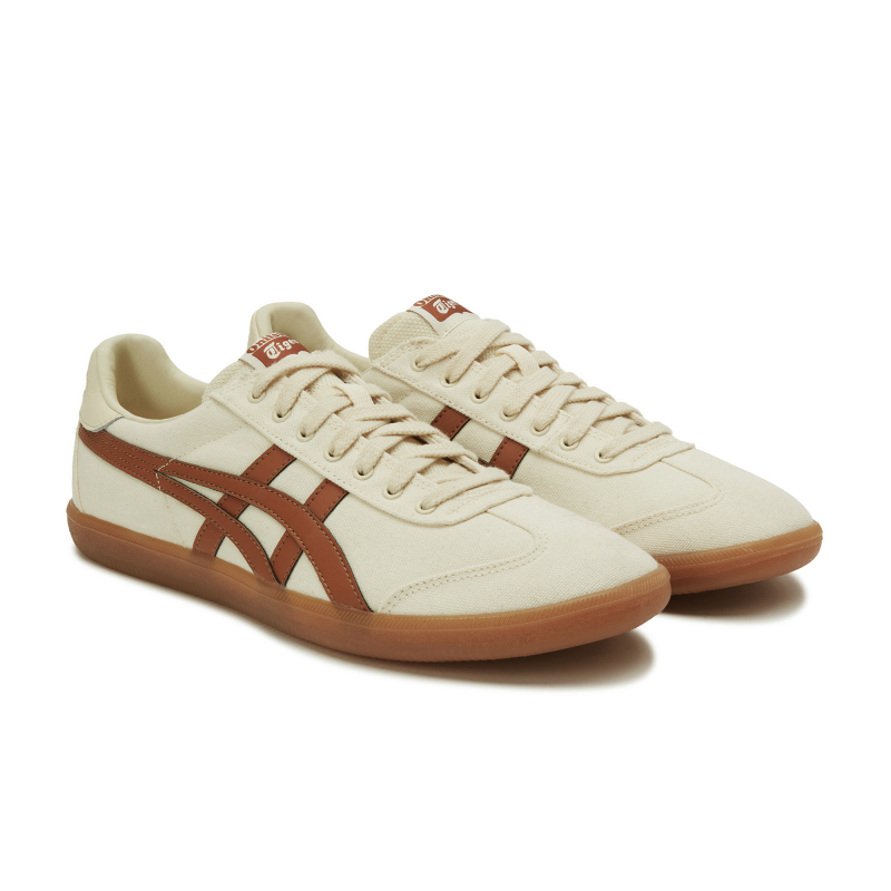 米黄色的帆布鞋面搭配卡其色皮质鬼冢虎 Logo,文艺复古感十足。