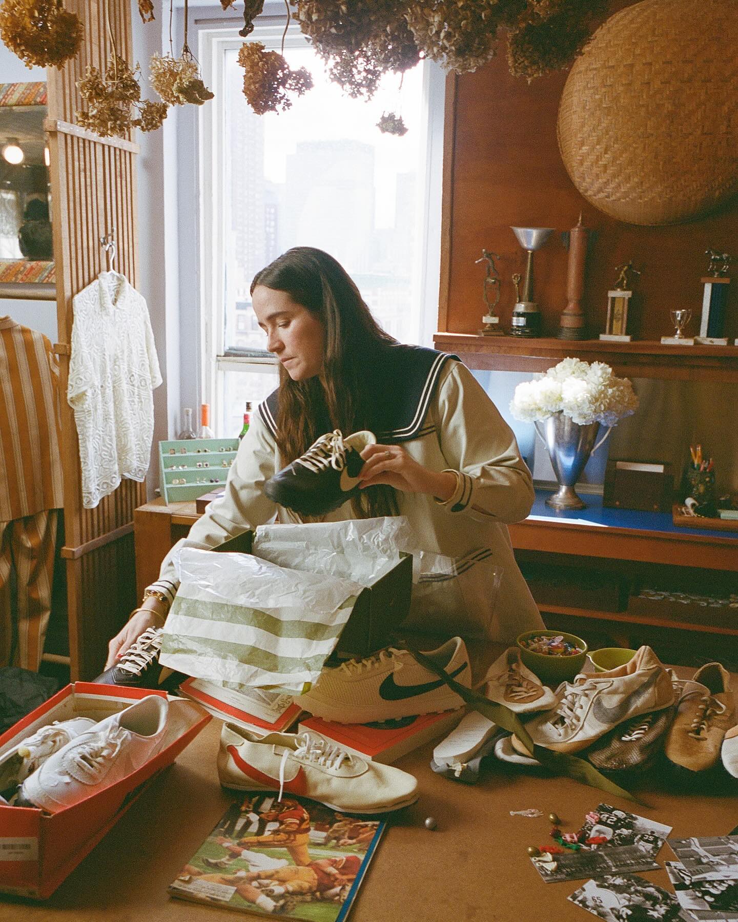 此前 Emily Adams Bode Aujla 参观了位于俄勒冈州总部的 Nike DNA Archives,与已逝的 Nike 联合创办人 Bill Bowerman 交流后,从而促成了这次合作。
