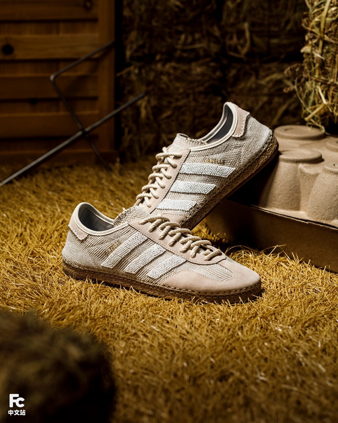 冠希打造的这双全新 CLOT GAZELLE BY EDISON CHEN 大胆地将常见的皮革材料,换成了更加轻量、透气的麻布编制材质。