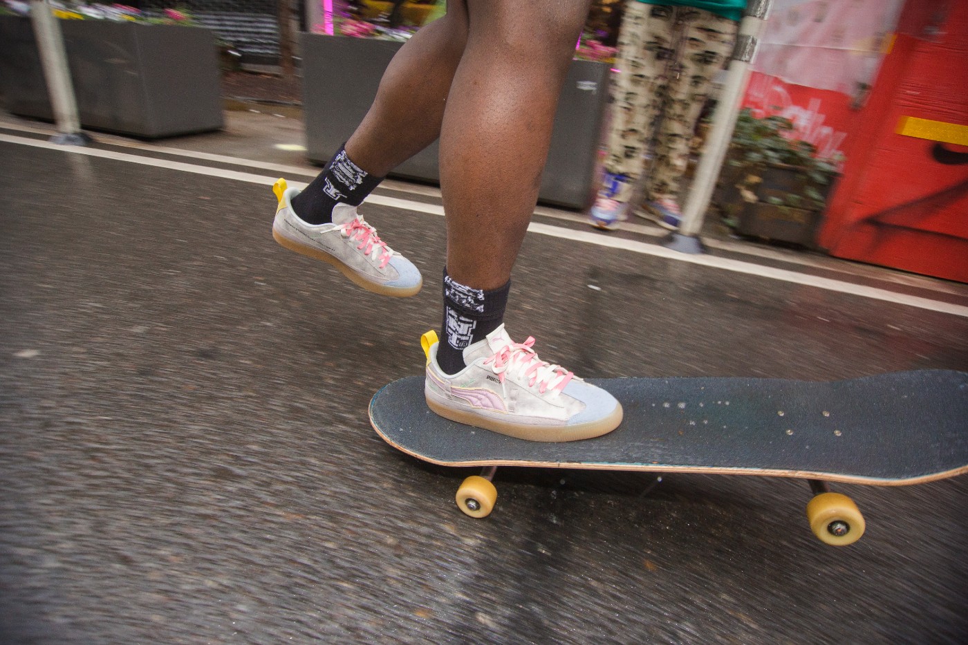同样是 PUMA 携手创意艺术工作室 KIDSUPER STUDIOS 打造的联名款式,对 PUMA 经典鞋款 SUEDE 进行重塑。