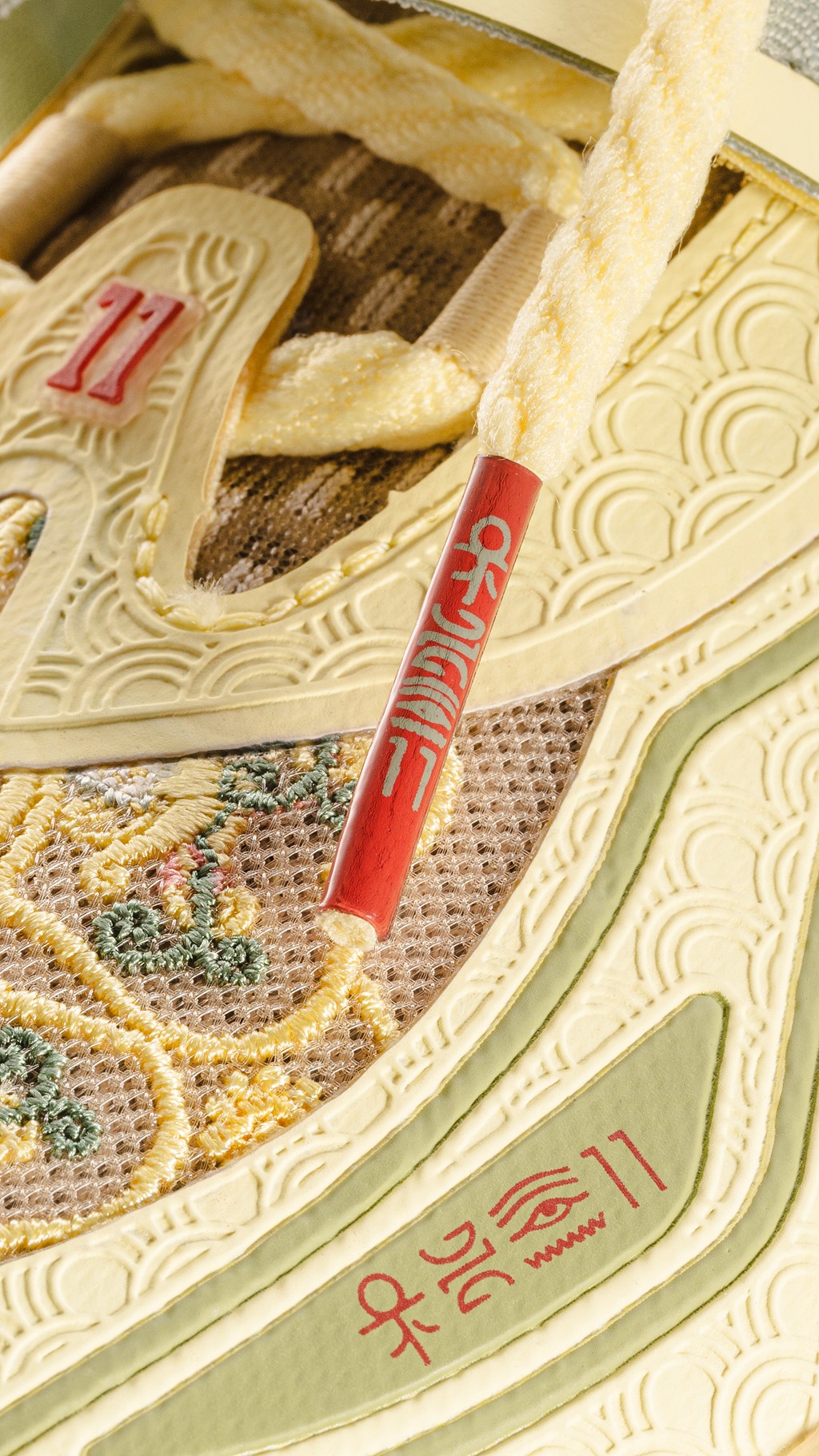 最大的亮点在于鞋身融入了丰富的古风元素,从古代纹样中汲取灵感。