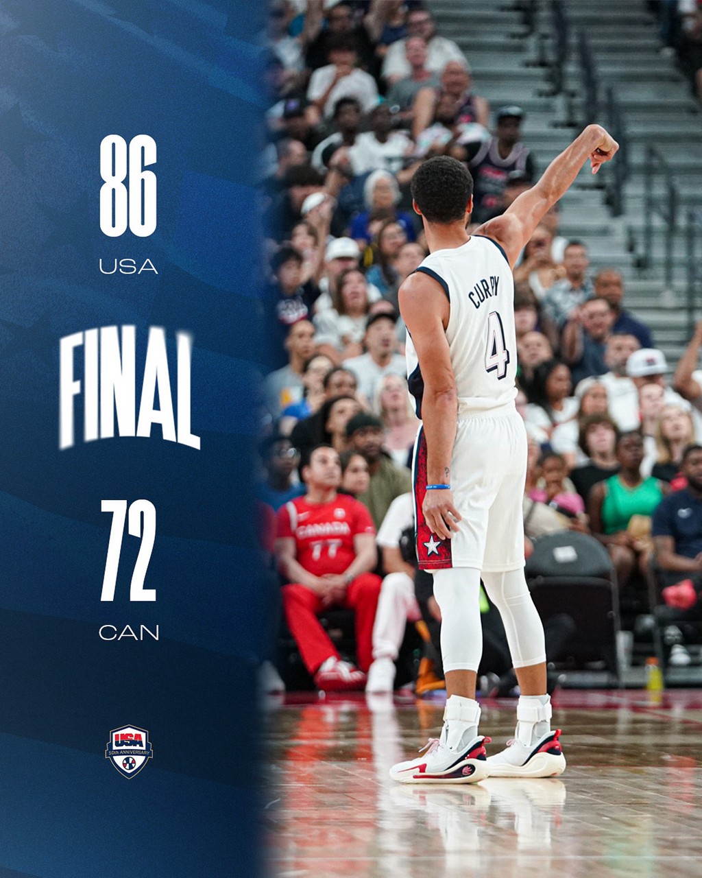 整支球队虽然开局有些慢热,但很快就在第二节找回了状态,用窒息的防守将加拿大限制住,最终大胜对手。
