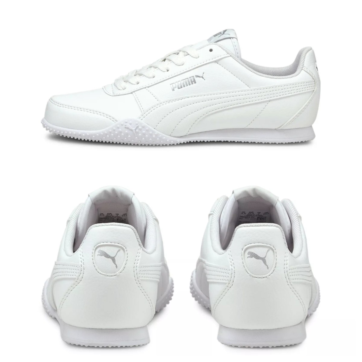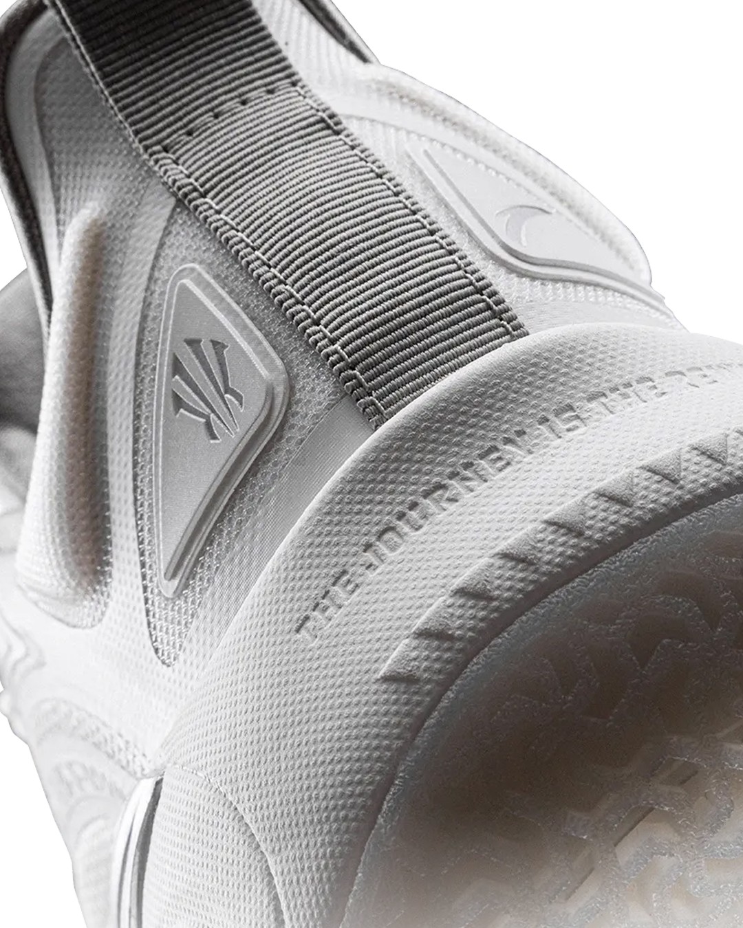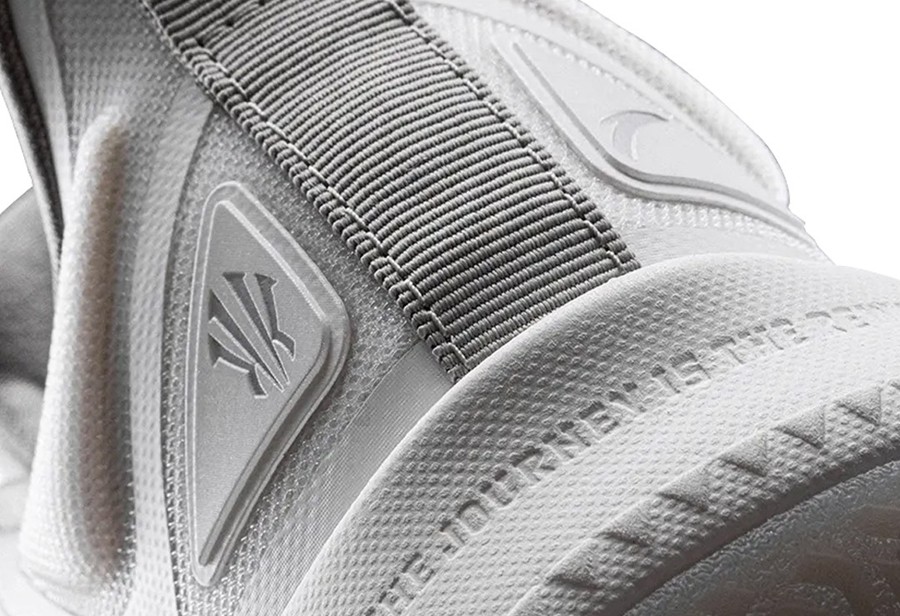 鞋款身采用通体纯白覆盖,鞋舌、鞋侧等细节,辅以细腻银色妆点,营造清爽又暗藏杀机的灵动格调。