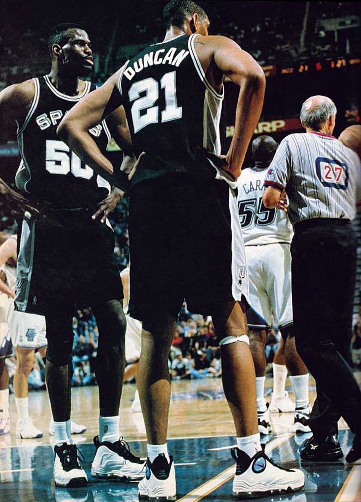 白黑配色国内印象中似乎没有发售,当时马刺双塔大卫·罗宾逊和邓肯同时上脚,与钢铁硬派气质完美契合。
