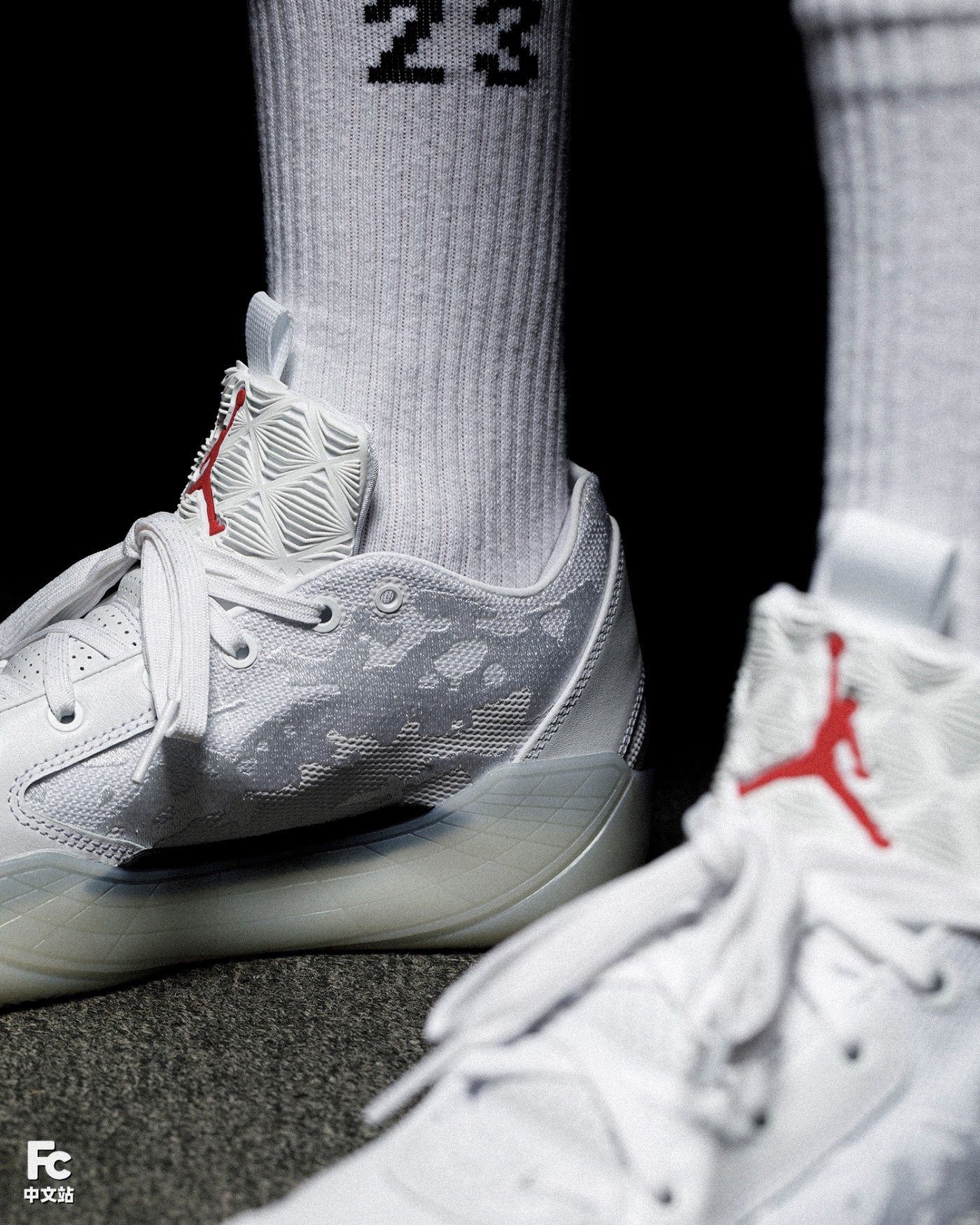 鞋舌前端与后跟的 23 字样,本次巧妙通过「9」的镜像演变而来。