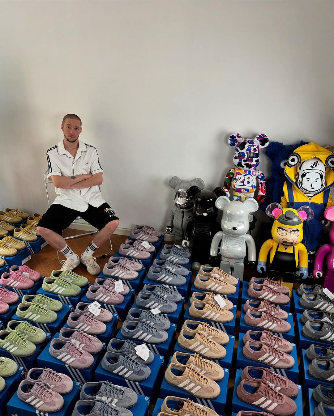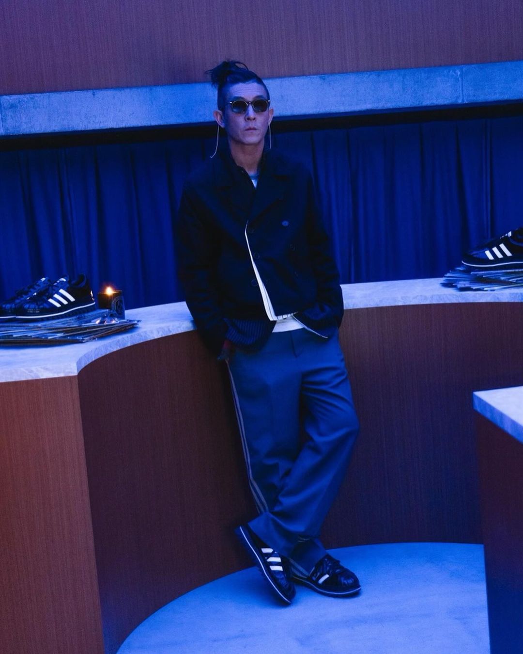 此前与老婆一起穿了蓝色款式的 CLOT GAZELLE BY EDISON CHEN。