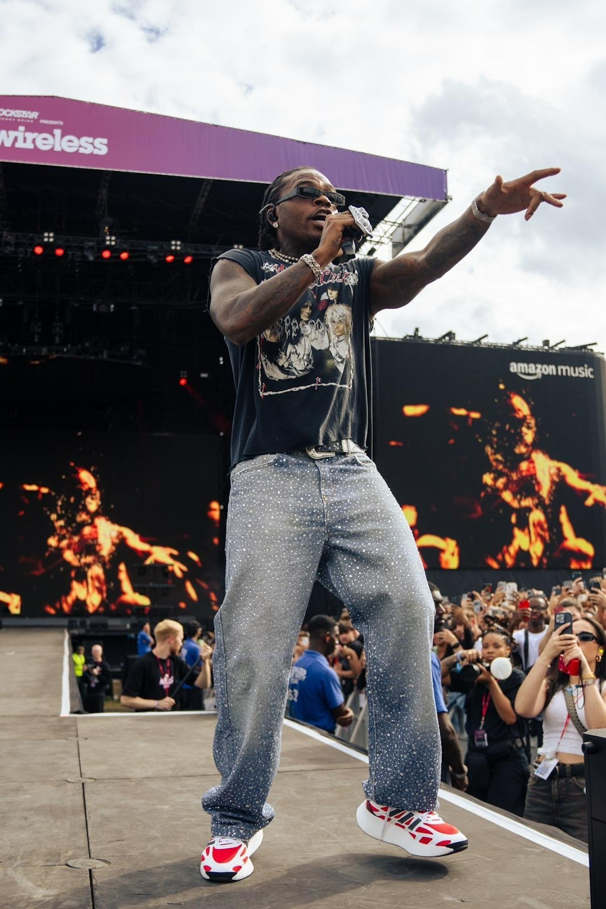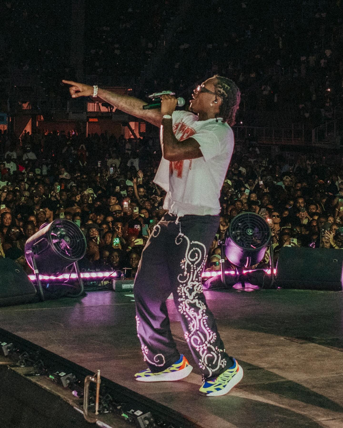 截至目前这双鞋已经释出了三款配色,音乐节上 Gunna 上脚了 adidas Adizero Aruku 的这两款配色,搭配不同裤装同样展现出时尚感。