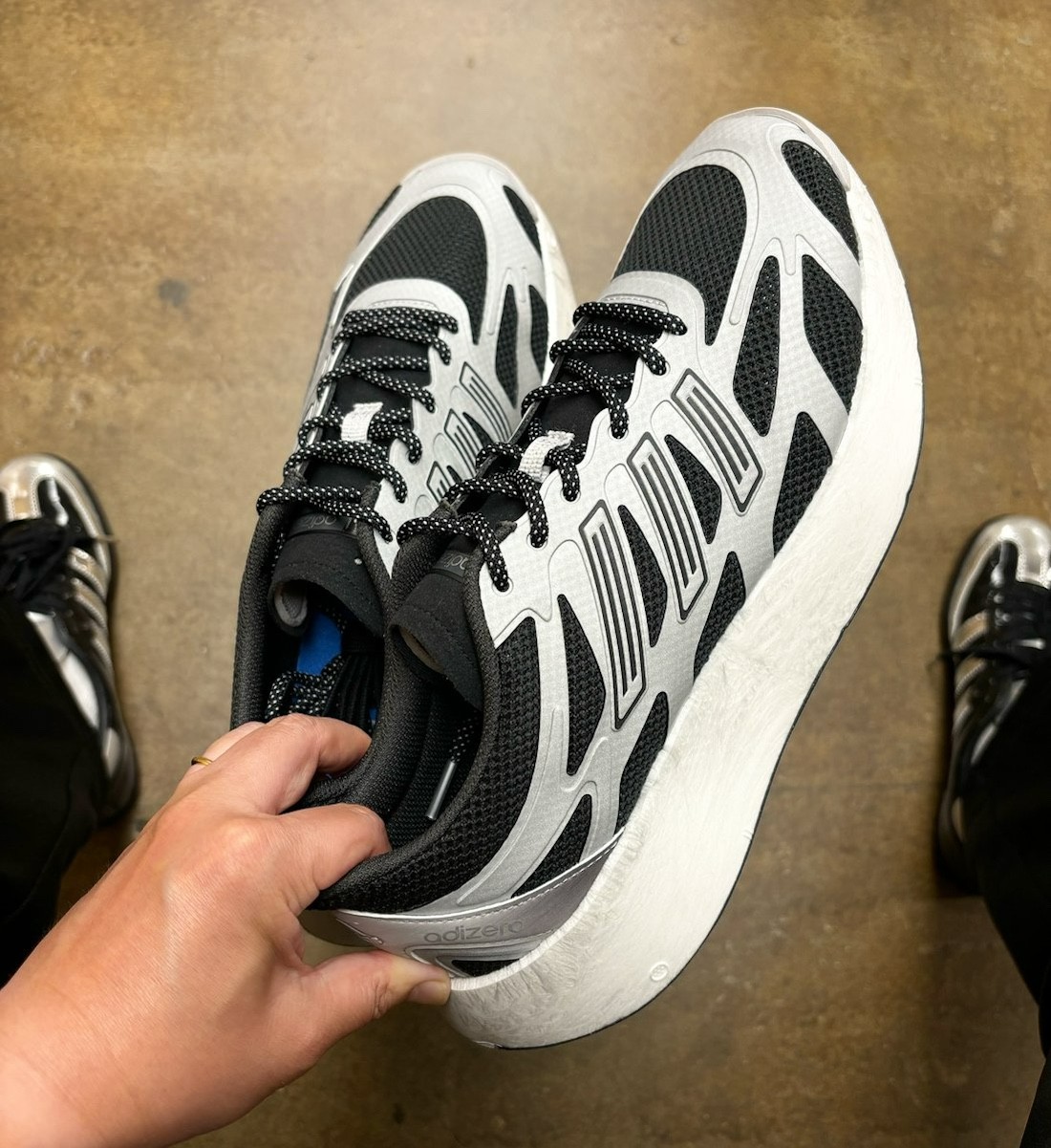 双方最新作品选择以 adidas Adizero Aruku 为蓝本,目前仅一张实物图曝光,但大部分细节基本都能看清。