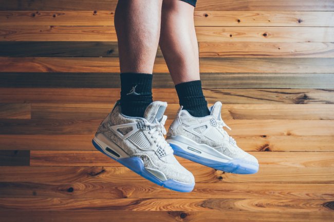 Jordan Brand 曾在 2015 年和 2019 年分别打造了一白一黑两双「镭射」AJ4,目前黑色主流男码市价已经来到 2k 以上,白色市价更是直接逼近 4k 元大关。