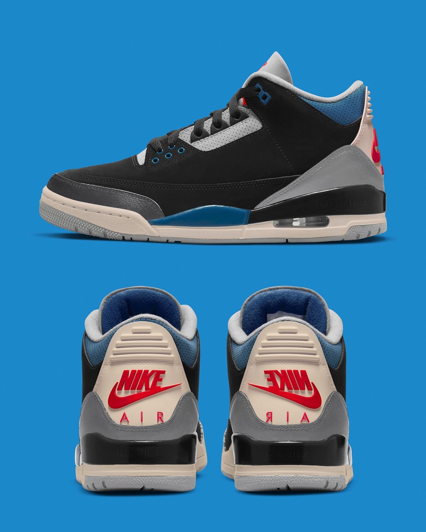 同时在鞋带扣,内衬和后跟细节部分融入红蓝双色点缀,有种类似此前「What The」AJ4 的观感营造。