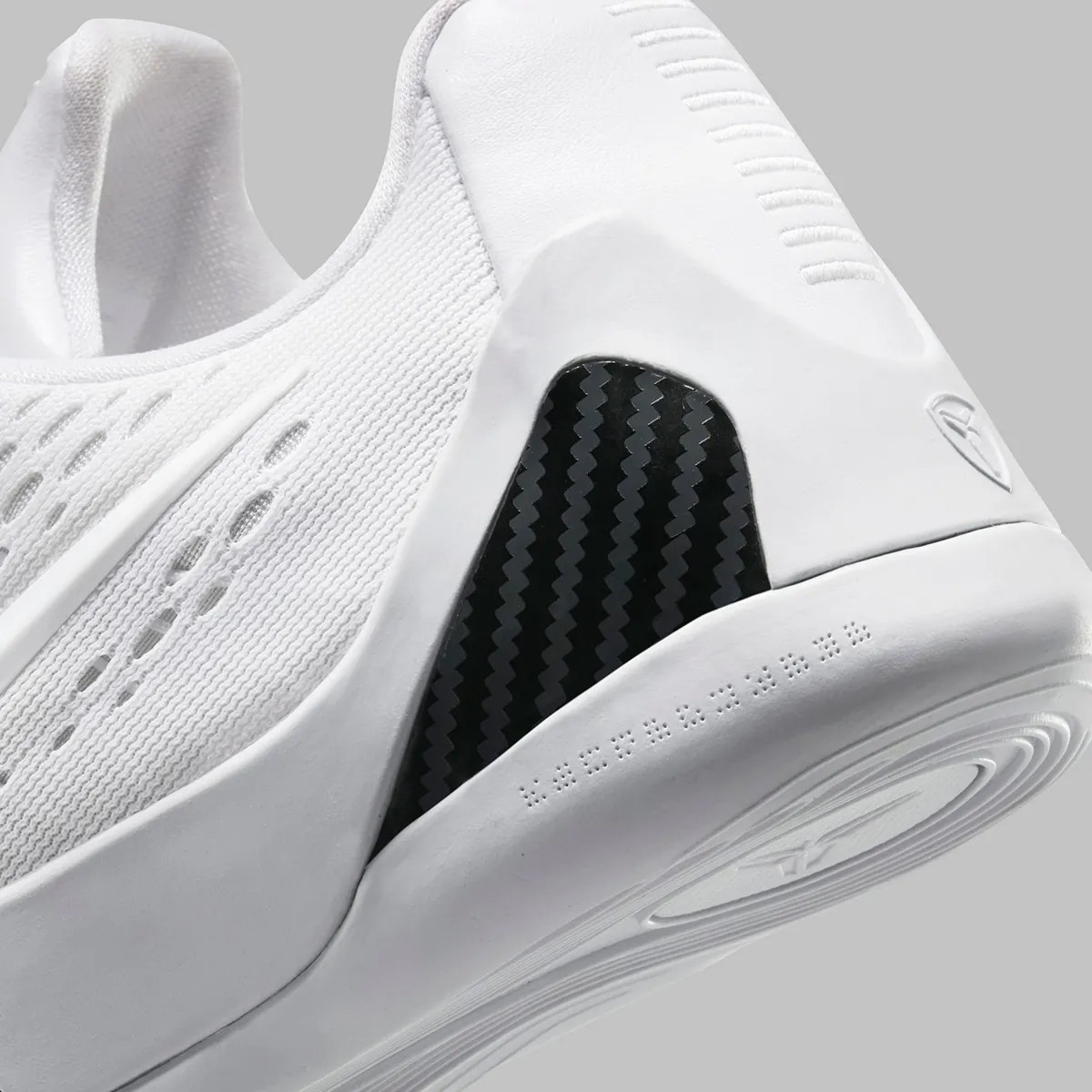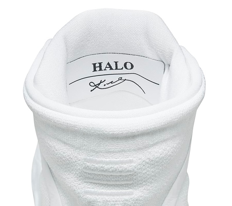 这个配色主题由瓦妮莎和 Nike 共同提出,希望每年科比生日当天,都会推出一款科比战靴的 Halo 配色,用代表纯净的全白色,致敬科比,传承不熄的曼巴精神。