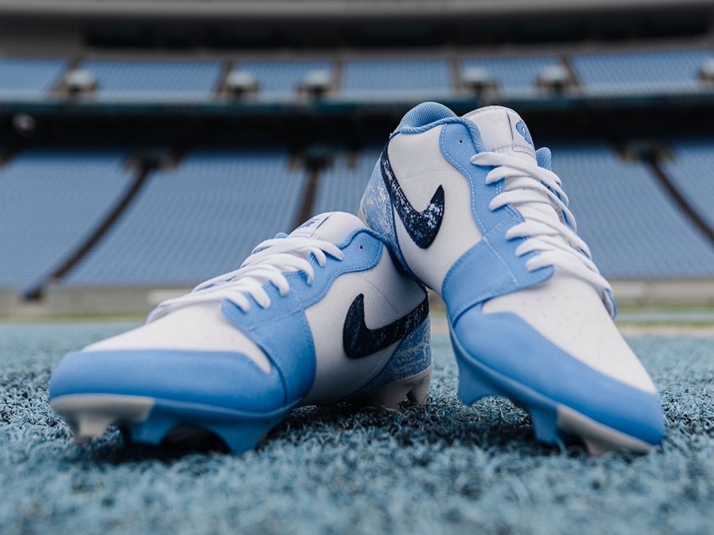 比如近日,北卡大学公布了两双为橄榄球队打造的 PE 战靴。