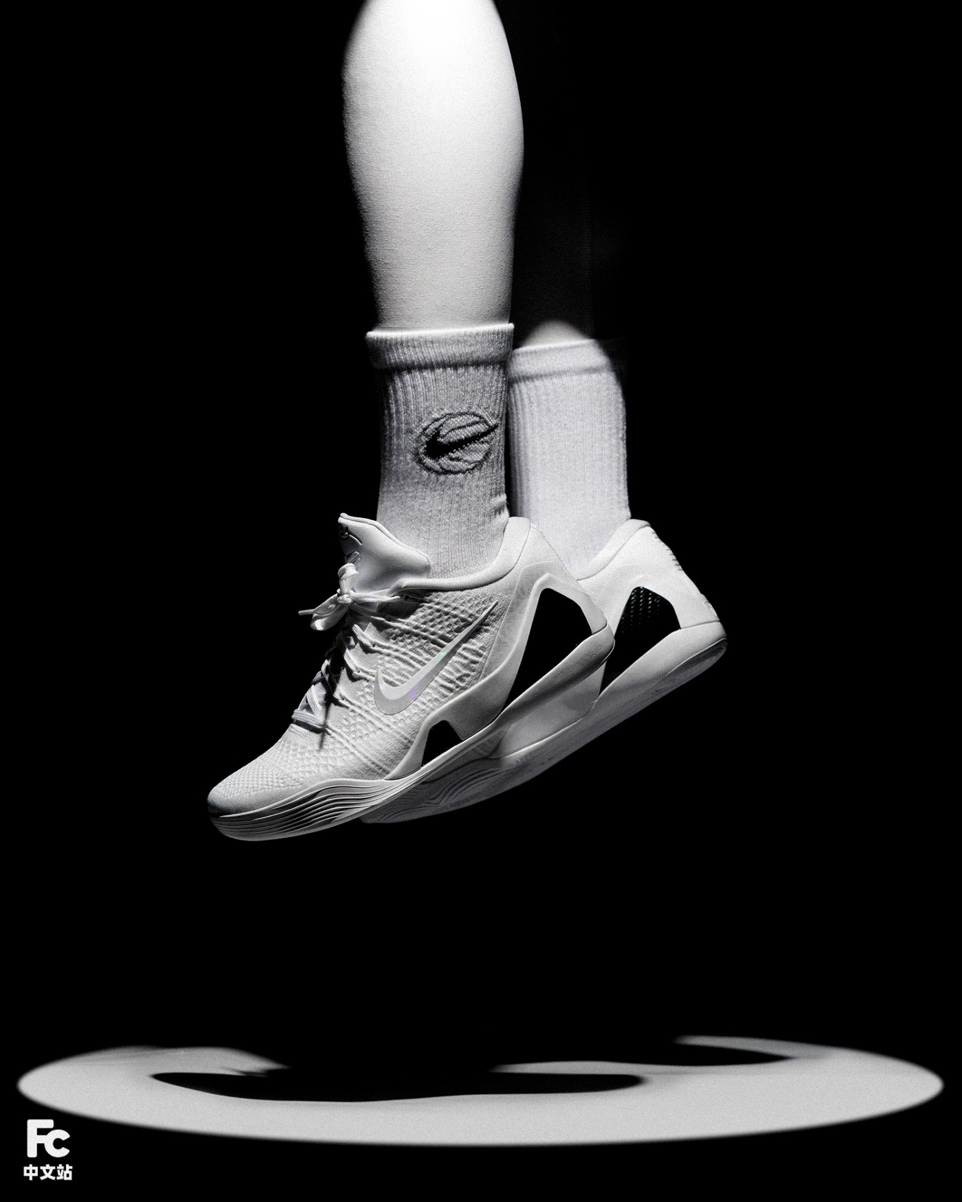 这个配色主题由瓦妮莎和 Nike 共同提出,希望每年科比生日当天,都会推出一款科比战靴的 HALO 配色,用代表纯净的全白色,纪念科比,传承不熄的曼巴精神。